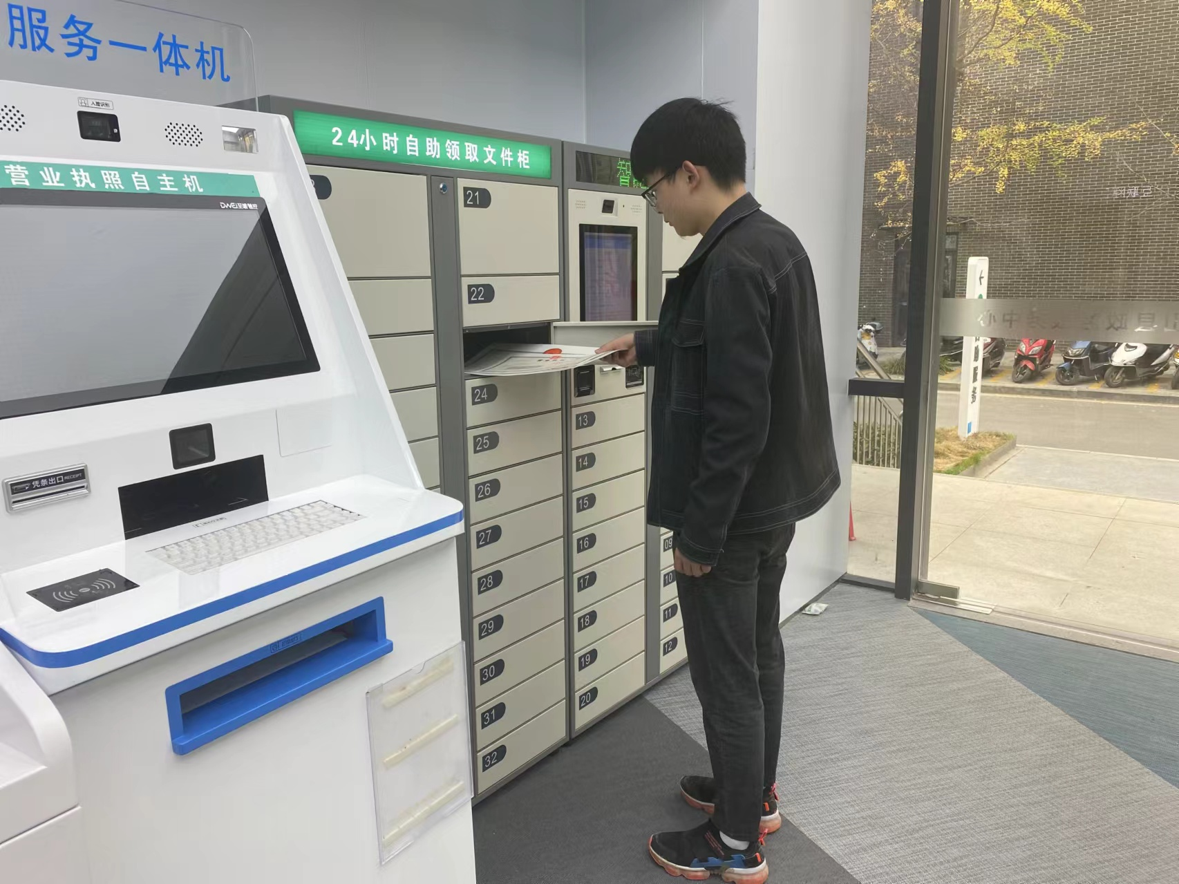 今日竹山网消息 “现在也太方便了,我前些天在网上申请的公司执照,因为出差没有取,没想到今天下班时间还能在自助柜拿。而且里面不仅有执照,还有一套免费的公章!”陈先生激动地说道。
