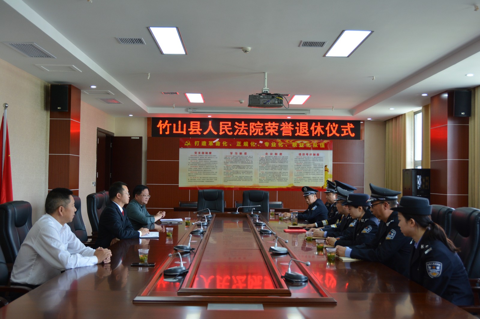 今日竹山网消息 4月18日上午,竹山法院为退休干部李杰同志举办荣退仪式。