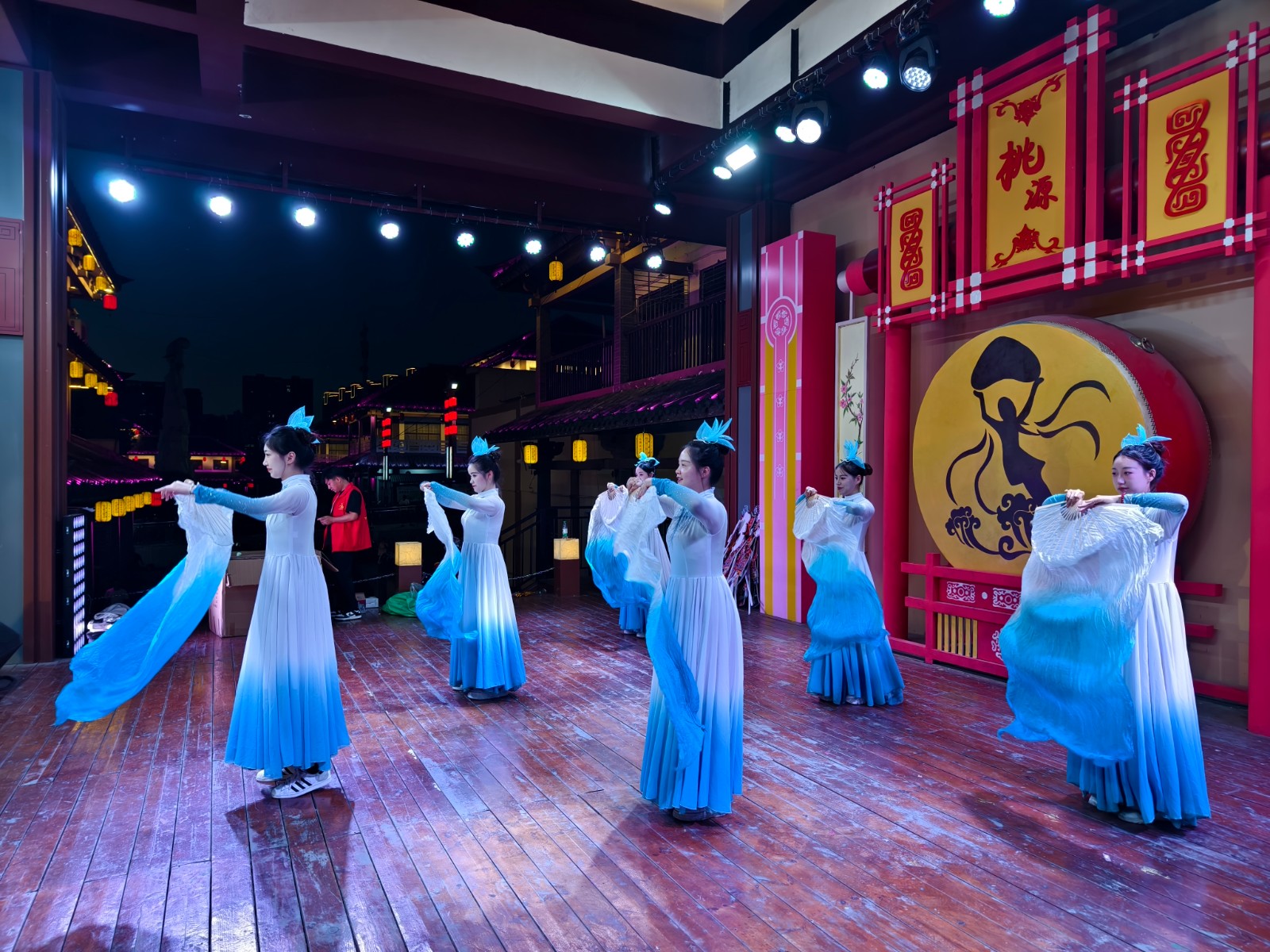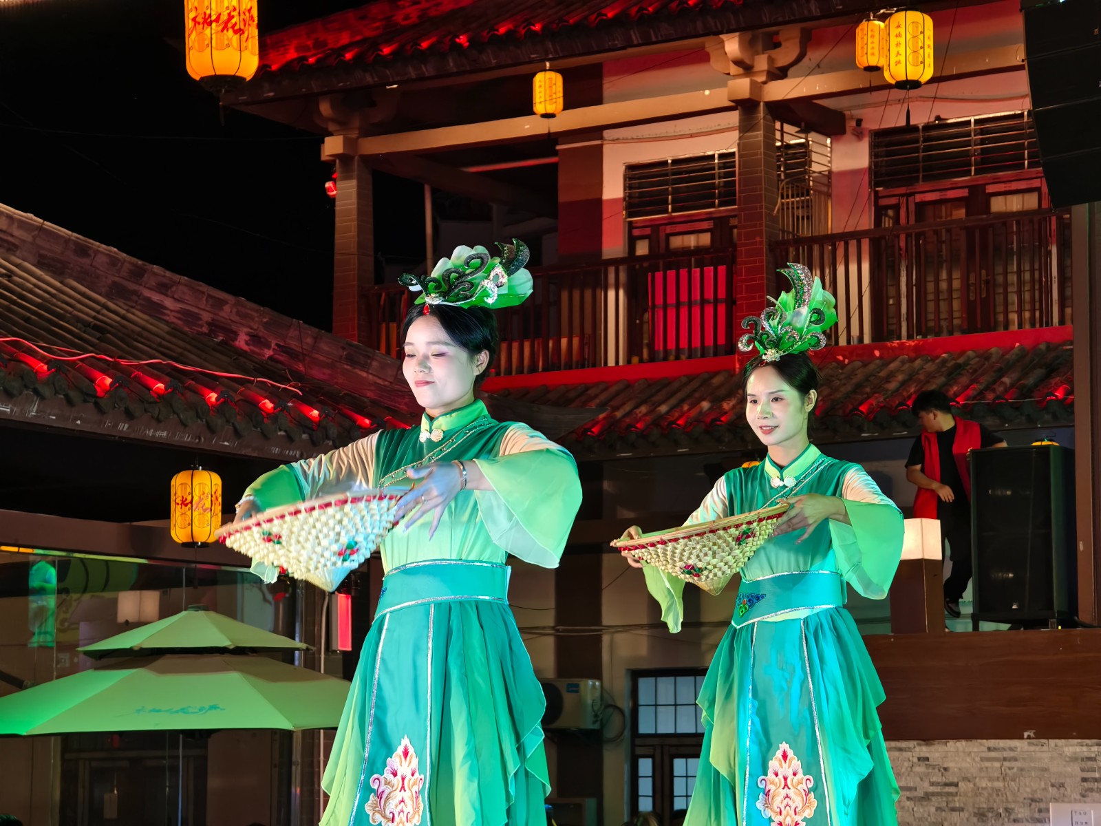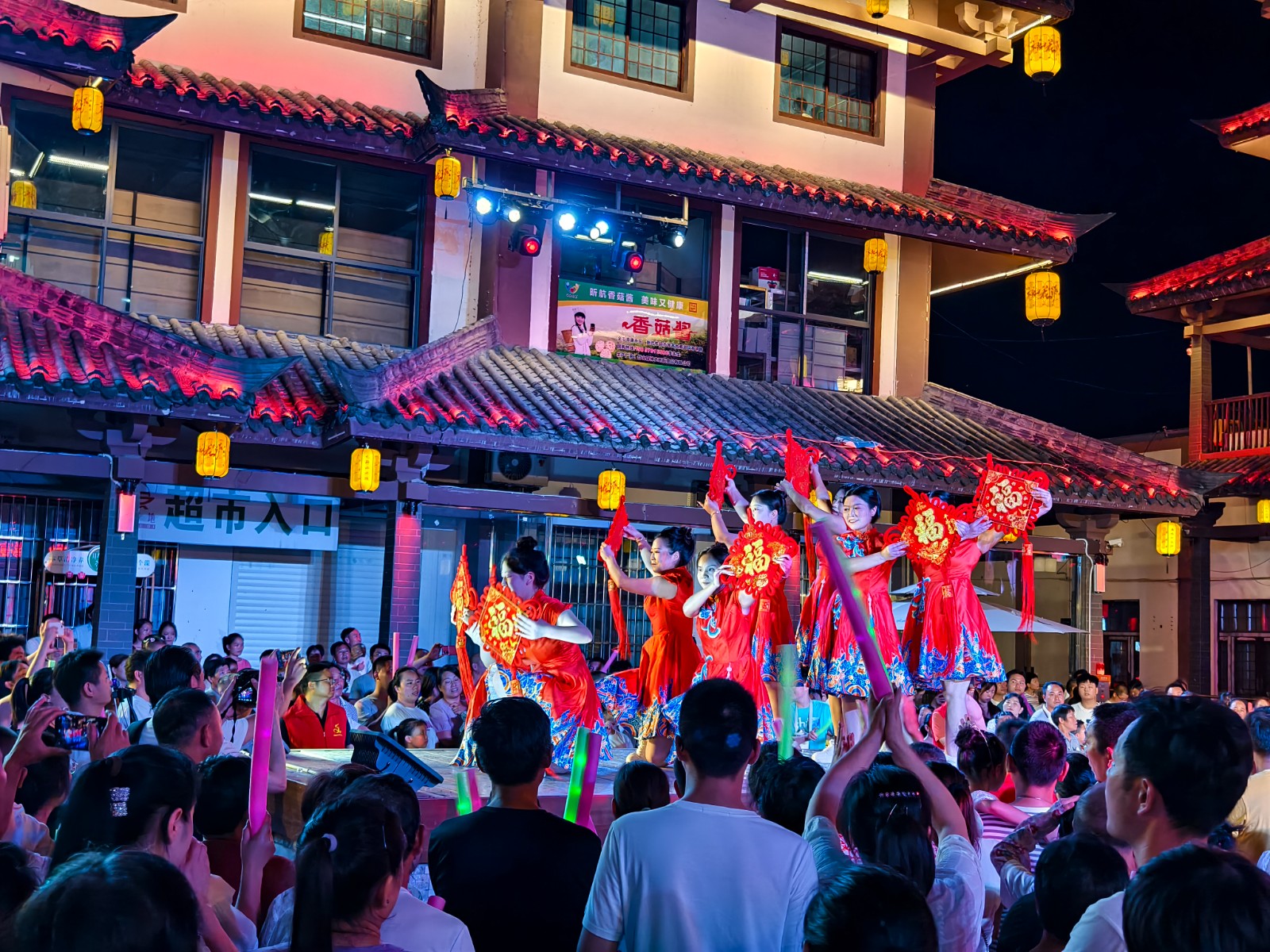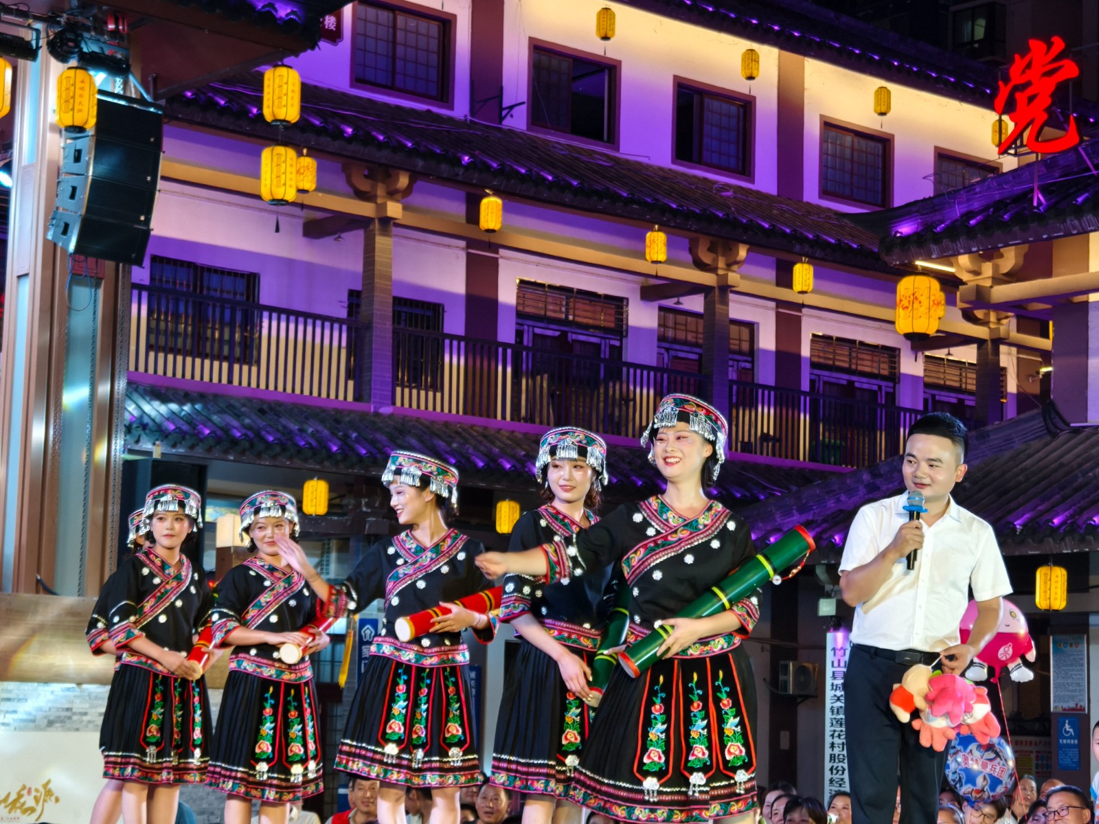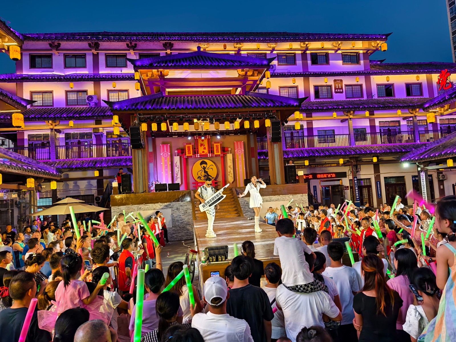 今日竹山网消息 8月12日晚,桃花源街区灯光璀璨,热闹非凡,在陶然广场深河乡的表演的舞蹈、渔鼓表演唱、杂技、快板舞、皮影非遗秀等精彩节目吸引近万人围观。(章伟 李玉升)