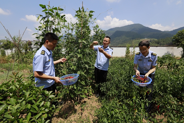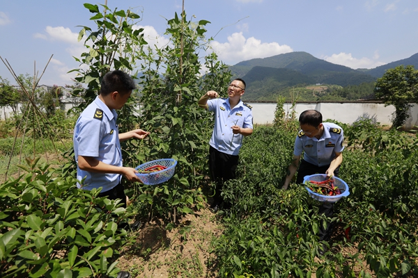 今日竹山网消息 长长的豇豆、尖尖的辣椒、圆圆的番茄、绿油油的四季葱……8月17日,笔者在秦古市场监管所菜园里看到,职工利用工作之余亲手种植的蔬菜长势喜人,蔬果飘香,这里也成为职工的“开心农场”。