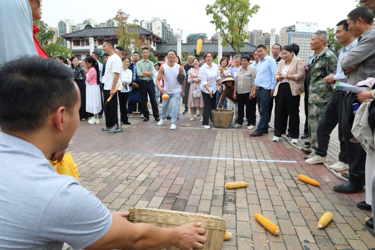 启动仪式后,农事趣味运动会接力开赛。民间拔河争霸、玉米投筐大比拼、扁担挑粮接力等等趣味比赛妙趣横生,吸引全县17个乡镇队伍踊跃参与,现场充满了轻松愉快的节日气氛。