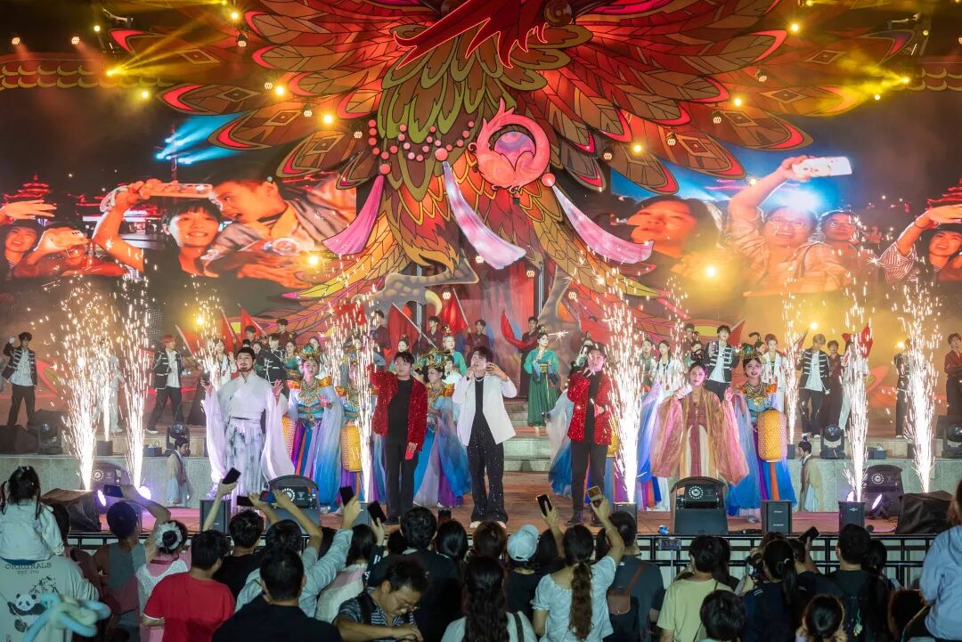 荆州方特东方神画以“国风潮玩节暨中秋奇妙夜”为主题,打造系列楚文化体验项目。“楚都花宴”迎宾、《百花大巡游》等剧目演出,带领游客深入感受楚文化魅力。夜间推出了《千灯明月宴》与《荆城焰庆》烟花秀。