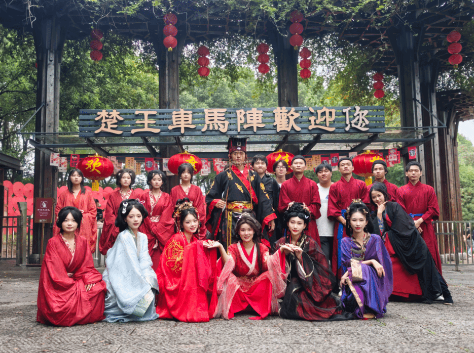 楚王车马阵景区以“硬核楚国现场”为主题,融合虚拟战车、全息楚军阵列等科技手段,推出《楚辞・离骚》对诵、剧本杀及手工体验活动。