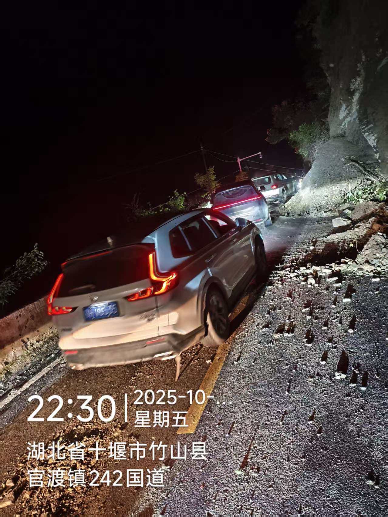 今日竹山网消息 双节团圆夜,秦巴深山却风雨不断。10月3日20时40分,黑夜如墨,竹山县242国道K1807+000松树岭路段轰然塌方——1000立方泥石瞬间吞没道路,切断了节日的归途。