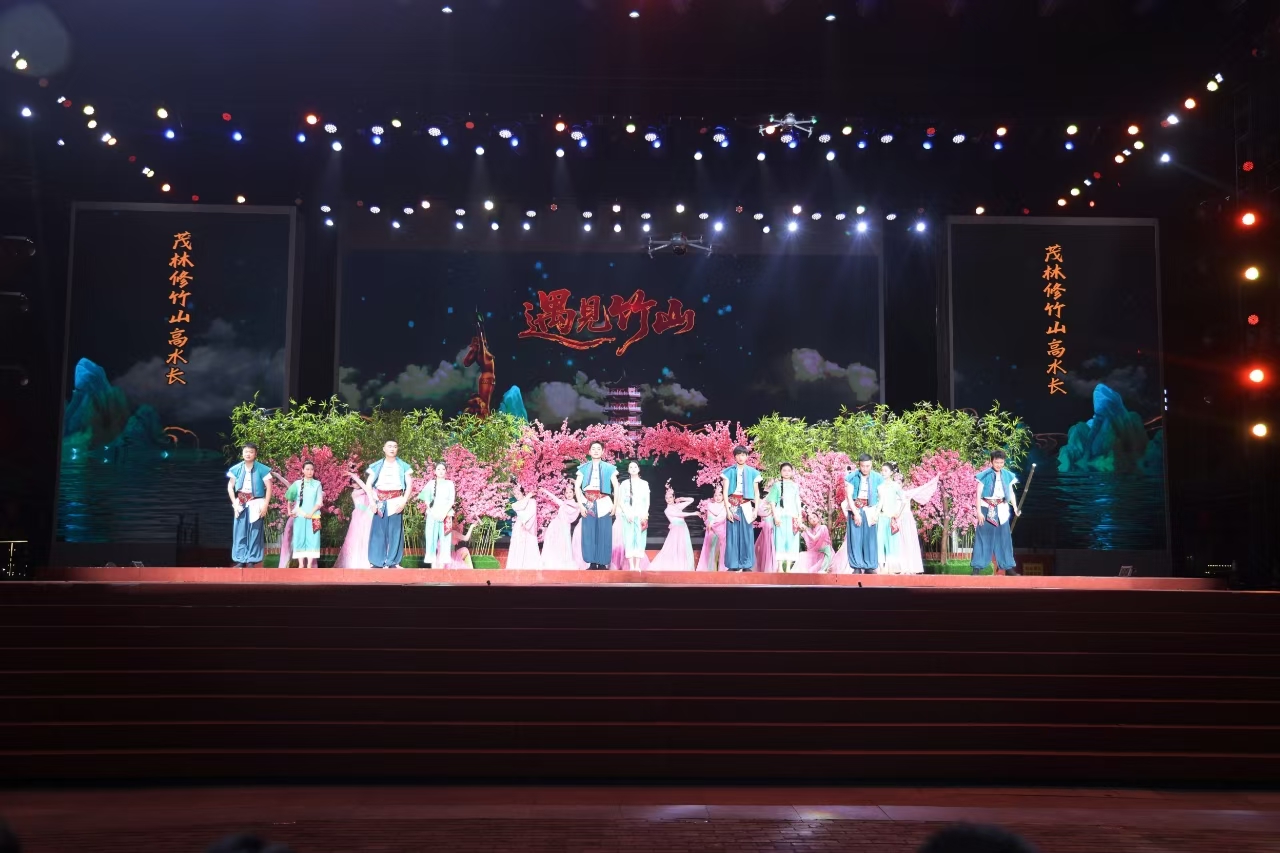 此次活动亮点纷呈,剧团精心编排多元节目矩阵,确保每日都有新看点:既有创新文旅IP融合的大型四幕音舞诗画剧《遇见竹山》,也有经典传承的竹山高腔传统戏《柜中缘》。其中《遇见竹山》以音舞诗画的艺术形式,生动展现竹山的堵河风光、女娲文化、古庸国文化、红色文化与竹山古盐道的沧桑,民风民俗和绿松石文化等,演员们精湛的表演、配合全息投影的唯美舞台布景,让观众将“遇见”最美竹山;《柜中缘》作为竹山高腔的经典剧目,凭借诙谐幽默的剧情、独特的高腔唱腔韵味,唤起了老观众的童年记忆,也让年轻游客感受到传统戏曲的鲜活魅力;非遗展示晚会上悠扬婉转的竹山民歌《山歌越长越快活》《太阳过了河》《十块帕子》《劝郎十杯酒》等民歌,用质朴的方言歌词、动听的民间旋律,传递出竹山人民的生活热情与对家乡的热爱,歌舞《在希望的田野上》等民俗表演,通过“文艺 + 民俗”的形式,让游客在欣赏演出的同时,直观感受竹山丰收景象,传递丰收喜悦,这个国庆中秋双节将乐翻天。