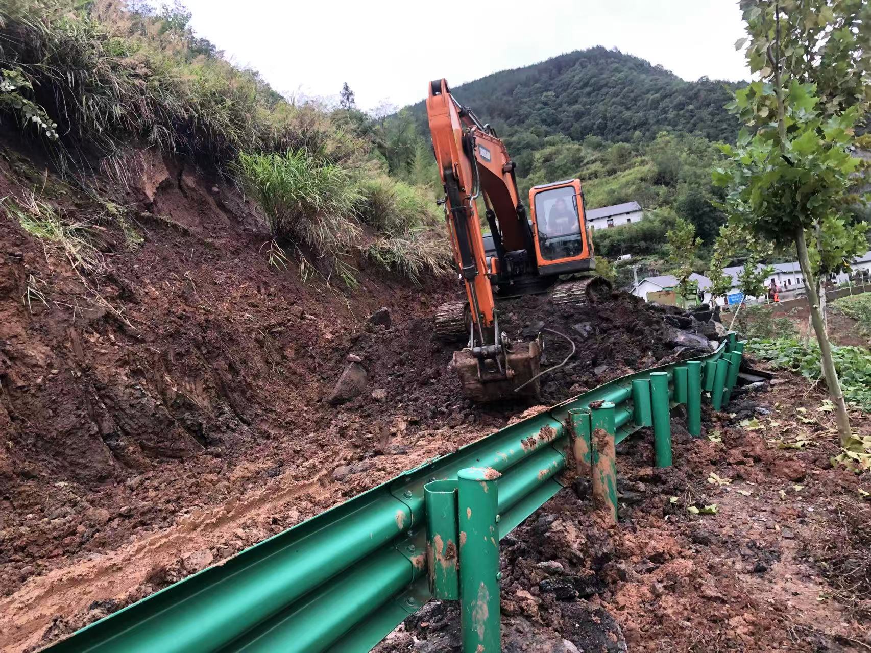 10月4日晚11时,229省道新堰村段发生山体滑坡,道路被拦腰冲断。花园公路养护站迅速抵达现场,经上级研判,做足准备于次日展开全面抢通。5日清晨,滑坡体显露真面目,险情比想象中的还要严峻,道路完全损毁,滑坡方量达5000立方。机械轰鸣中,养护人员再度与时间赛跑,至下午6时,塌方基本清除,损毁路面完成碎石沥青重铺,再现“公路铁军”高效战力。