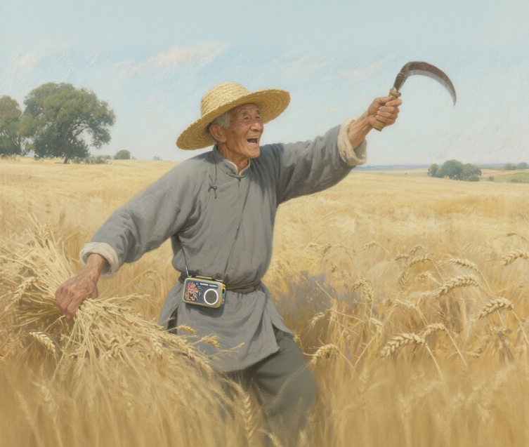 兄弟中的老三,我们都唤他小哥,如今也已七十岁。他年轻时怀揣诗人、画家的梦想,挑着竹器工具走街串巷,一边编织竹器,一边抽空作画、写诗。这份浪漫差点耽误了终身大事,所幸他成了远近闻名的好篾匠。如今,小哥放下了篾匠活,专心侍弄着十多亩田地。农忙时节,他从早到晚忙碌于收菜籽、割小麦之间。小哥两任妻子都因病早早离世,两个女儿远嫁他乡,儿子在东北当了十多年兵。我给他买了个蓝牙小音箱,他干活时总爱放京剧《智取威虎山》,“今日痛饮庆功酒,壮志未酬誓不休……”激昂的唱词,日复一日地回荡在田间地头,仿佛跟着这调儿,再苦再累都能咬牙坚持。