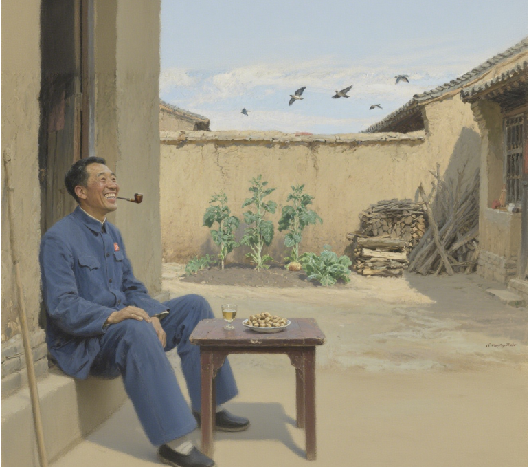 大哥心态豁达乐观。侄子在广东开了公司,还自称董事长兼总经理,可自公司成立以来,几乎没给大哥拿过钱。大嫂子十多年来一直在广东带孙子孙女,大哥一个人留守老家,靠着每月一千多的五七工养老金,自己种粮种菜,倒也知足常乐。闲暇时,他总爱喝上几杯小酒,酒后常笑骂儿子:“啥董事长、总经理,一年到头也不给老子寄一分钱,还让你妈在广东带娃,把我一个人扔老家……”骂声里,满是对儿子的牵挂与无奈。