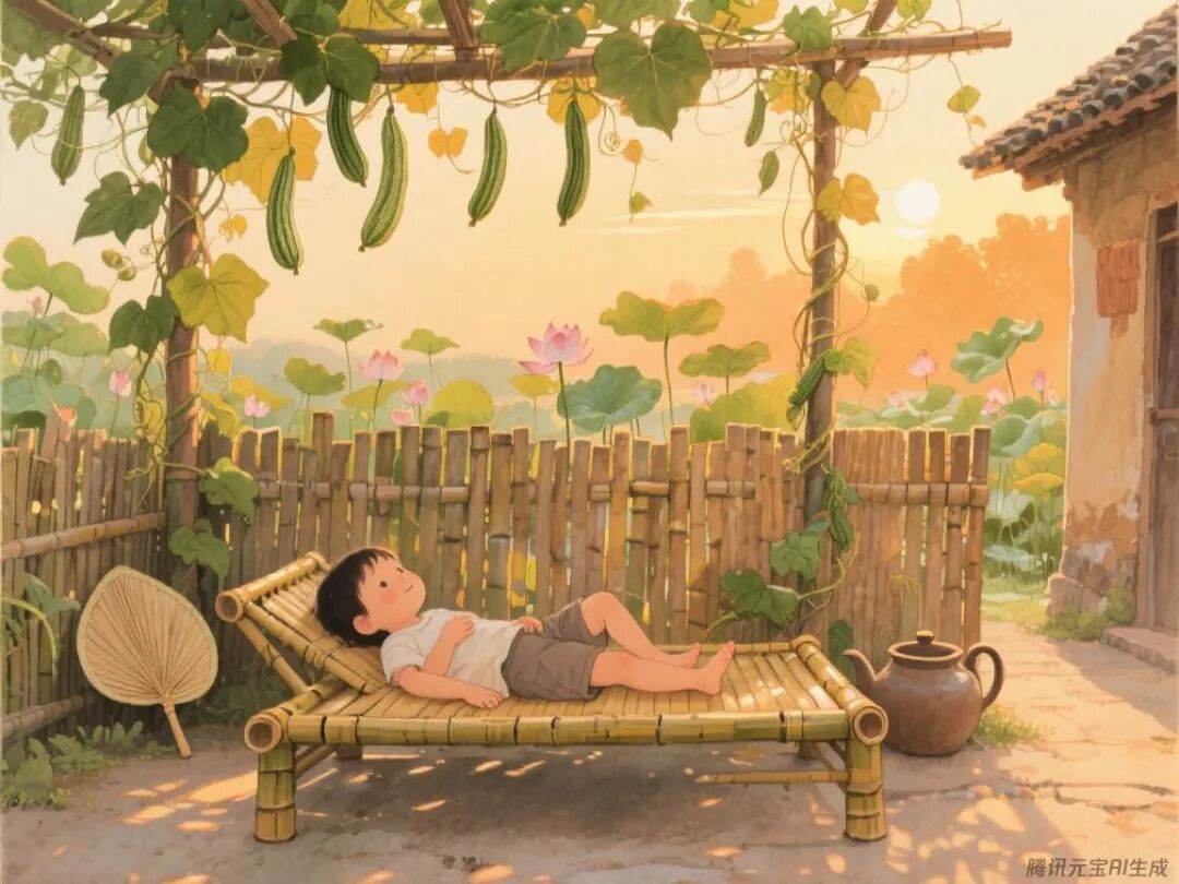 洗澡出来,镜子上蒙着层水汽。空调调到抽湿模式,冷风卷着墙缝里的潮气掠过脚踝,忽然就念起圣水湖。小时候在外婆家,该有个小院围着竹篱笆,篱笆上爬满丝瓜藤,都是外婆留的老种子。藤架下支张竹床,傍晚躺在上面,风里飘着荷叶的清香,比空调舒服多了。