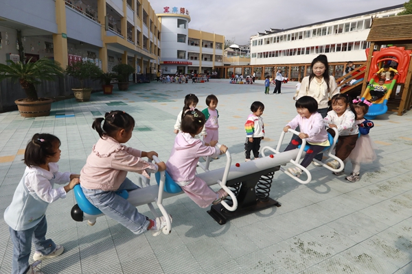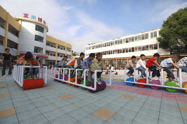 今日竹山网消息 10月9日,宝丰镇中心幼儿园的孩子们在老师的带领下到室外开展趣味游戏和运动健身。