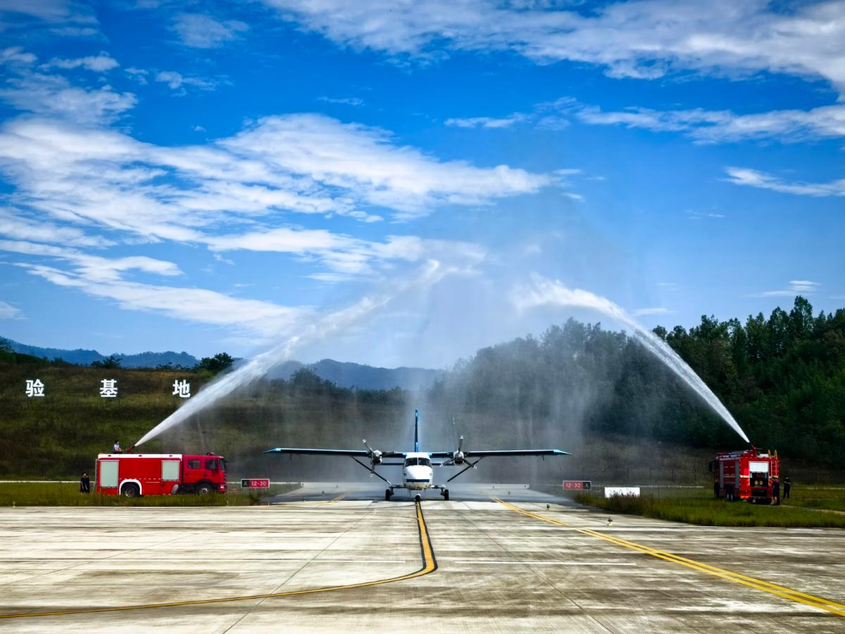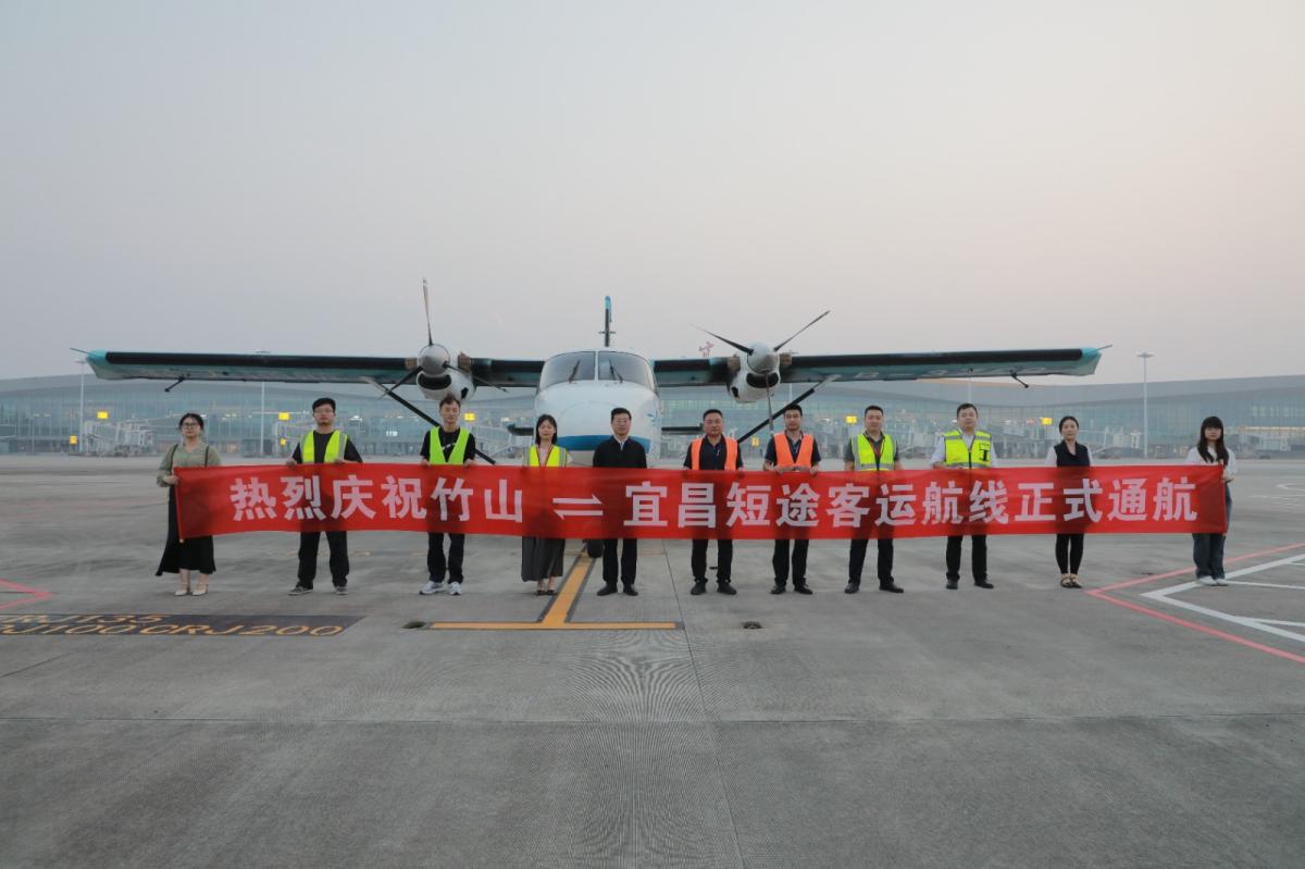 9日上午11时50分,由武汉汉南机场起飞,中途停靠十堰武当山机场的运12飞机稳稳地降落在竹山通用机场停机坪,机场以“过水门”最高礼遇迎接飞机的到来。下午15:40,飞机从竹山通用机场停机坪起飞,经过两个小时的飞行,降落在三峡国际机场。
