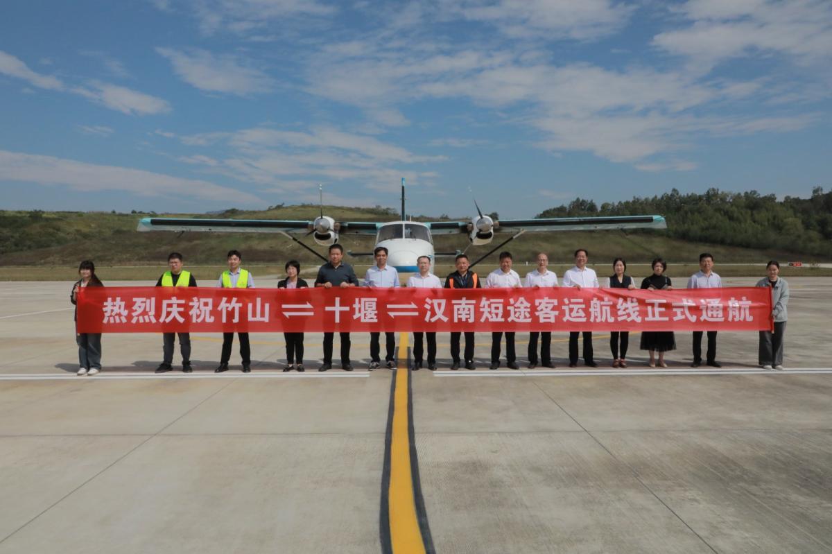 今日竹山网消息 10月9日,竹山通用机场传来好消息:当天,竹山至十堰至汉南延长线、竹山至宜昌两条短途客运航线正式开通。县领导熊应标、李金柱、刘子龙参加首航仪式。