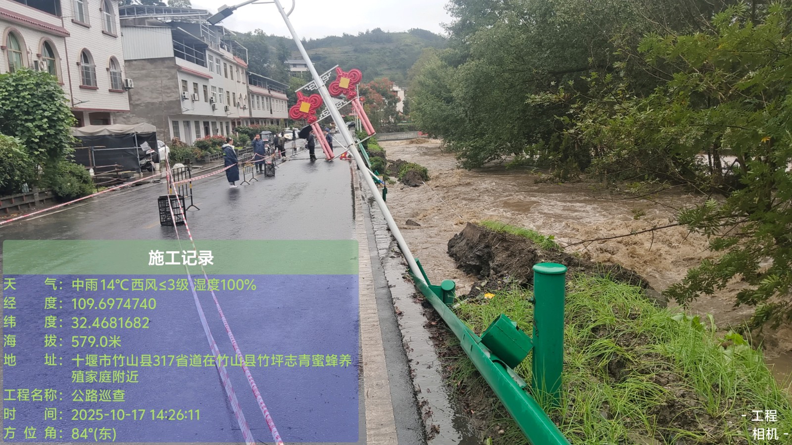 17日下午2时25分,317省道竹坪乡马鞍山村段因河水暴涨,造成近200米公路堤岸损毁,路灯、钢护栏等附属设施一同受损。大西公路养护站联合属地力量,第一时间设置警示标识,实施半幅通行,并持续监测堤岸变化。截至18日上午,已采取推土围挡等应急警示措施。