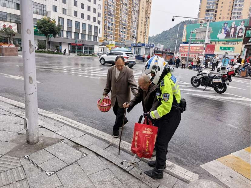 当日早晨,竹山交管大队骑警队员庹云与同事如常在县实验小学周边执行护学任务,当她们巡逻至施洋转盘路段时,庹云敏锐地发现一位白发苍苍的老人在路边步履蹒跚,神情焦急而无助。这一反常景象立刻引起了庹云的警觉。她立即上前,温声询问道:“老人家,您怎么了?是不是遇到什么困难了?”然而,老人因情绪激动且年事已高,言语表达十分模糊,无法清晰地说出自己的姓名、住址或家人联系方式。于是庹云一边安抚老人激动的情绪,告诉他“别着急,我们帮您找家人”,一边迅速将老人上报请求核查身份,经过一番努力,终于成功确认了老人的身份——老人家住文峰乡滚子岭村,名为詹传厚。信息核实后,庹云第一时间与老人的家属取得了联系。接到骑警电话的家属正因老人走失而心急如焚,得知消息后迅速赶往现场。见到安然无恙的父亲,家属激动地连声道谢:“太感谢你们了!我们找了很久,幸好遇到了你们这些负责任的警察!”