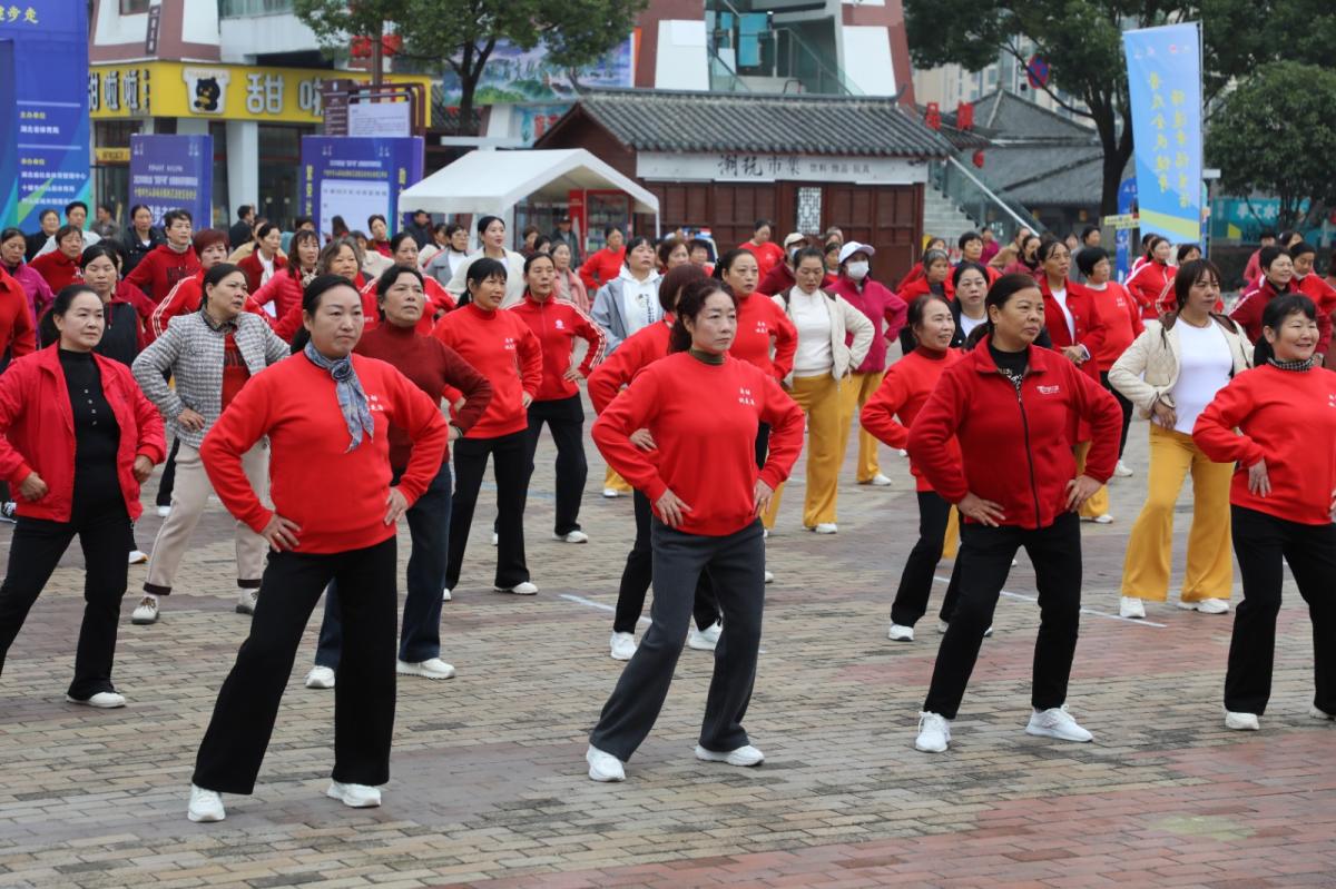 华中师范大学副教授、高级健身操舞教练员、一级艺术体操教练员王立清通过专业拆解与趣味引导,普及全民健身知识和健身操技能,让复杂动作变得通俗易懂。居民们从手脚不协调的生疏状态,逐渐跟上节奏。当高潮旋律响起,全场200余人整齐起舞。通过“理论讲解+实操指导+成果展演”模式,提升社区居民健身技能与参与热情。