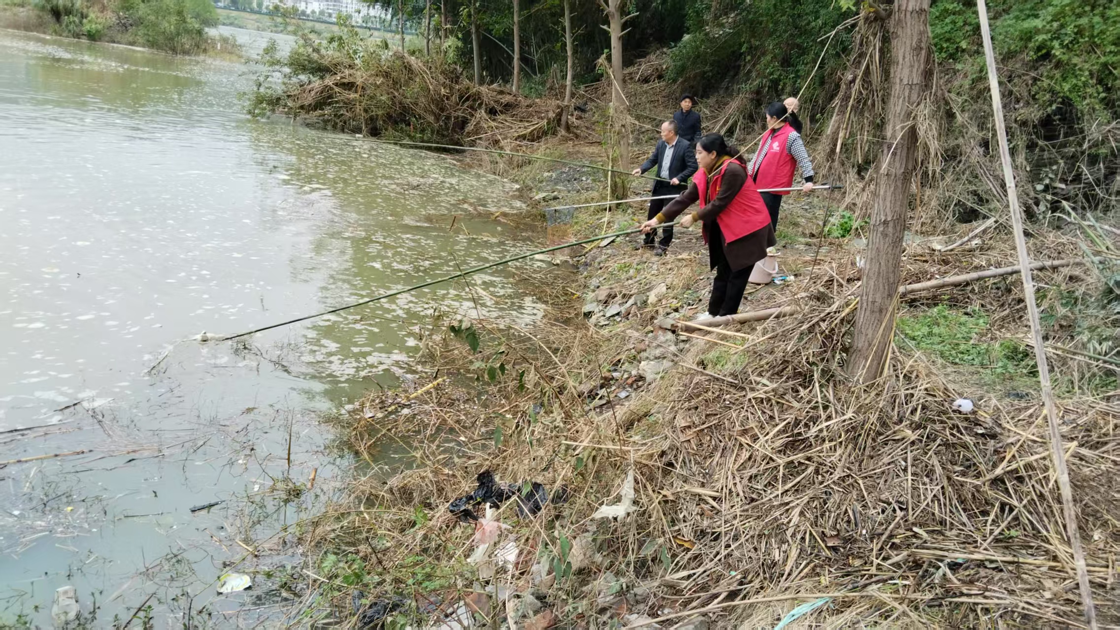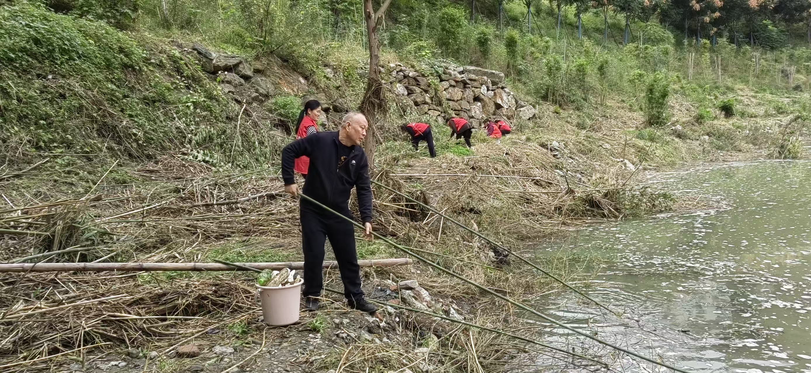 “大家注意分工协作,打捞时务必留意脚下安全!”清理现场,社区工作人员手持捞网、垃圾袋等工具,沿着河道沿岸细致巡查。针对河面漂浮的白色泡沫、塑料袋、饮料瓶等各类生活垃圾,大家相互配合、分片行动,通过“拉网式”排查与打捞,将隐藏在河道角落、水面漂浮的垃圾逐一清理上岸,并及时进行分类清运。经过一下午的集中整治,河道水面环境得到明显改善,原本漂浮的垃圾被彻底清除,河道恢复了清爽整洁的本色。