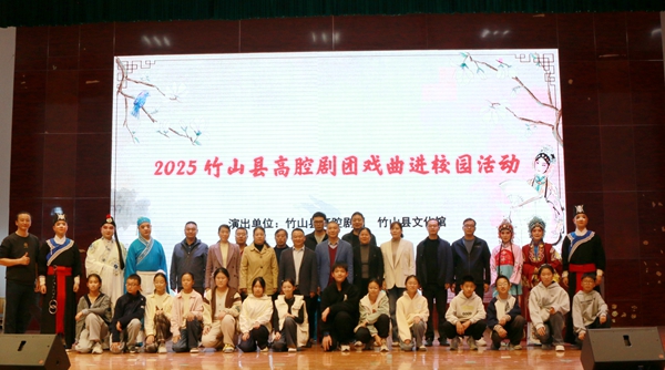 今日竹山网消息 10月28日,竹山县高腔剧团联合县文化馆走进茂华中学,以“赏经典戏曲,品文化韵味”为主题开展戏曲进校园活动,为师生带来一场沉浸式的中华优秀传统文化盛宴。