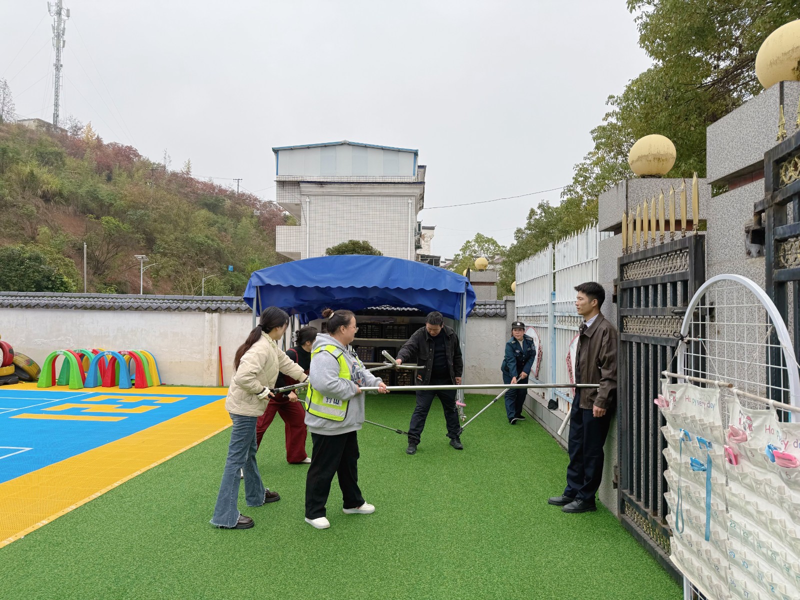 今日竹山网消息 为强化校园安全防护能力,提升师幼应对突发暴恐事件的处置水平,近日,擂鼓镇派出所联合护驾幼儿园共同开展防暴恐安全演练活动。