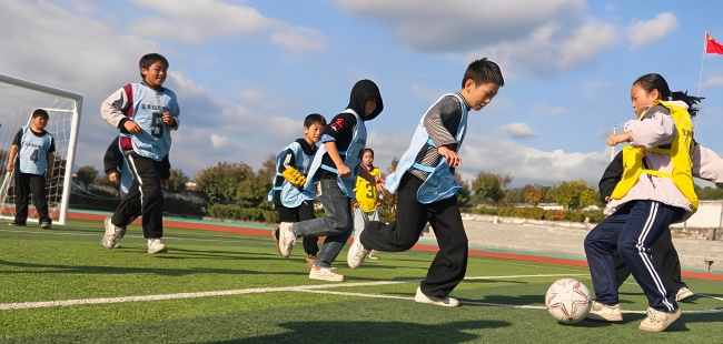 今日竹山网消息 10月30日下午,宝丰镇双坝小学的操场上,“校超”足球社团的小将们正在激烈角逐,蓬勃朝气点燃了整个校园。