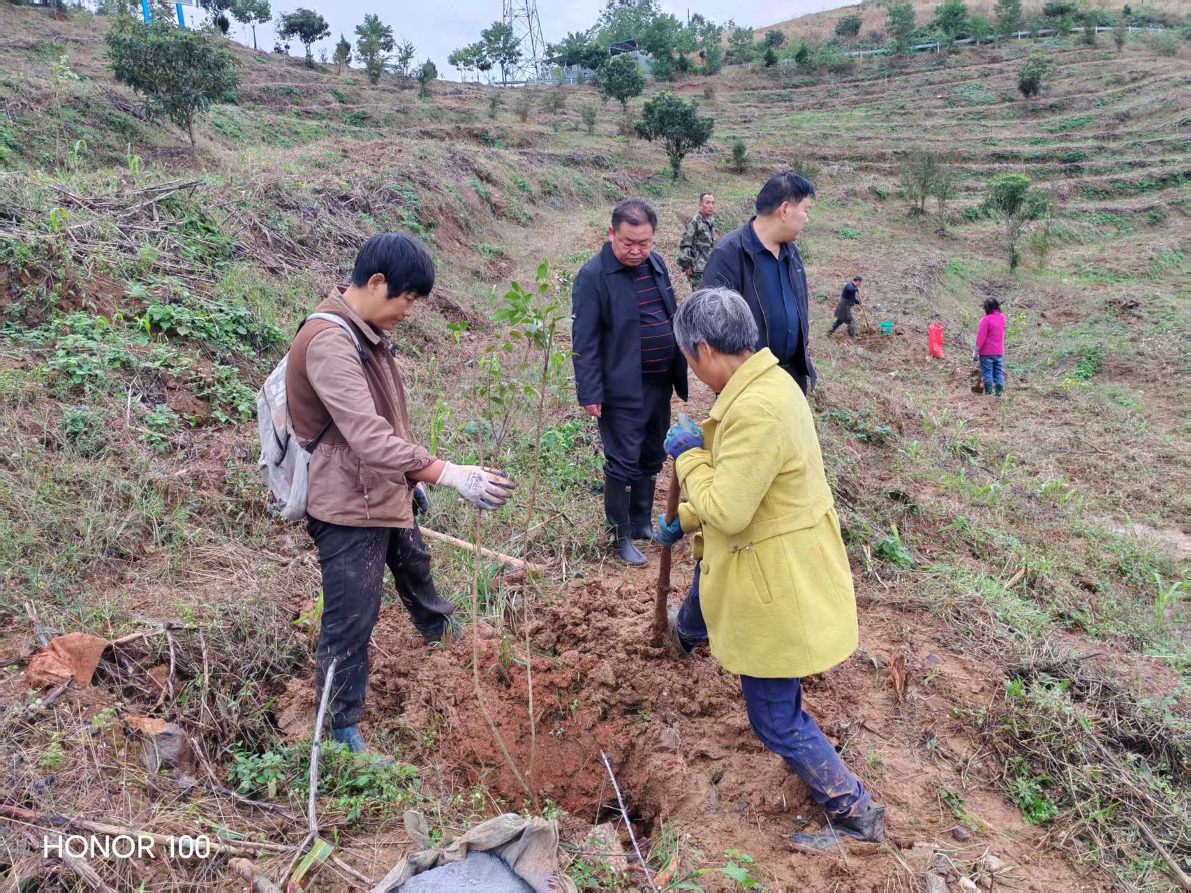 在何家湾灌沟,小东川村、五房沟村油茶基地内,工人们分工协作,有的挖坑栽苗,有的扶正覆土,一派忙碌景象。补植工作主要针对油茶树稀疏区域,采用间隔轮作、根系保护等农技手段,确保补植成活率达95%以上。“在这里干活每天能挣100元,一个月下来有3000元收入。”正在劳作的农户老华说,秋季补植不仅为周边村民提供了短期务工机会,也为全年油茶稳产提质奠定了基础。
