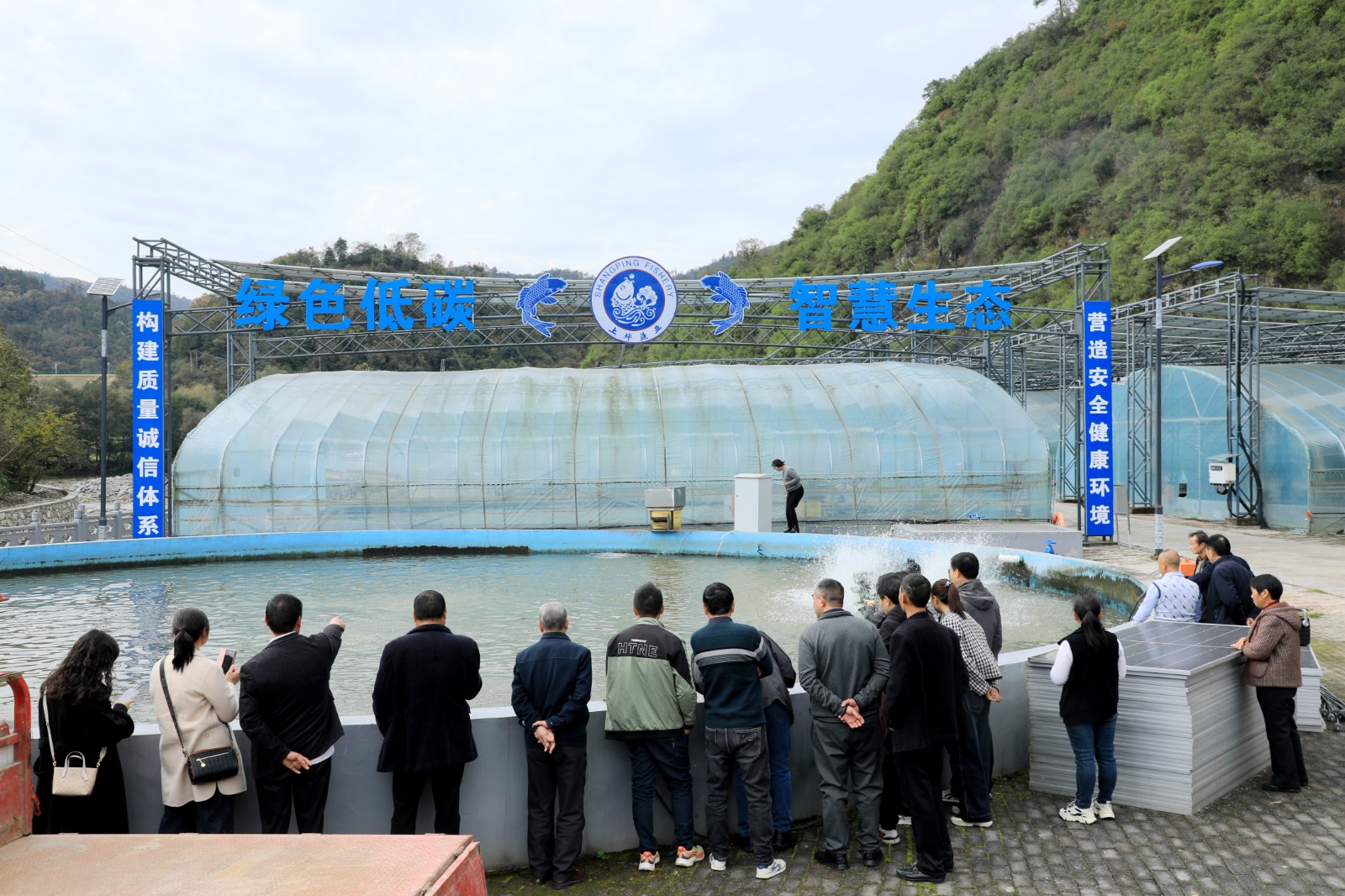 在郧西金钱湖渔业科技有限公司,学员们观摩了陆基圆池工厂化养殖设施。该公司养殖基地由政府投资、企业负责经营管理,养殖的是价格较高的名优鱼——鳜鱼,养殖收入部分作为当地村集体收入。基地充分利用了当地水库的优质洁净水源,养殖区上有太阳能光伏板可以发电,中有大棚、遮阳网等设施使养殖池长期保持适宜温度,下有完善的尾水处理设施确保尾水排放达标,整个基地水温、水质等均由电脑监控,日常管护有两人即可完成。完善的养殖设施和智能化管理手段,使该基地在降低养殖风险、确保养殖成功的同时,最大程度地降低了养殖成本。