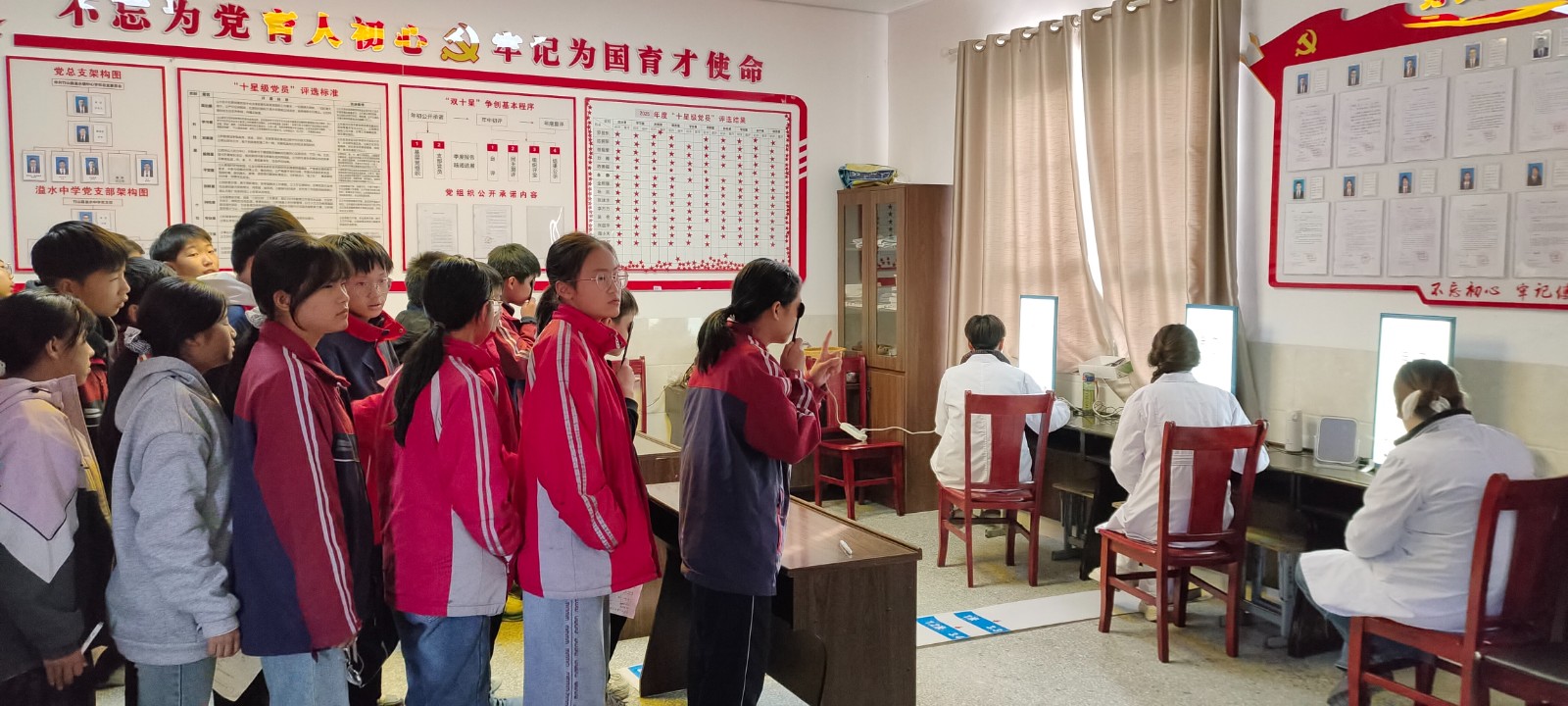 今日竹山消息 为关爱青少年眼健康,11月14日上午,竹山县妇幼保健院医院的医疗团队来到溢水中学,为在校821学生进行一次常规的眼健康检查。