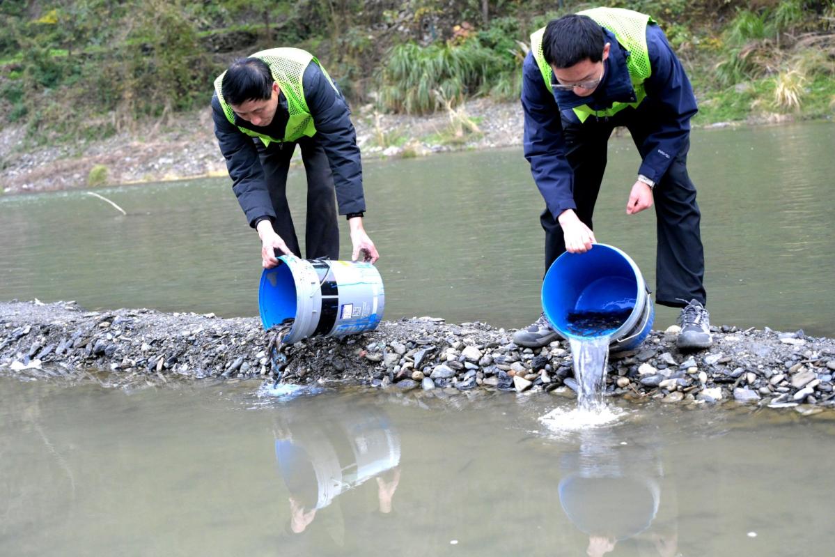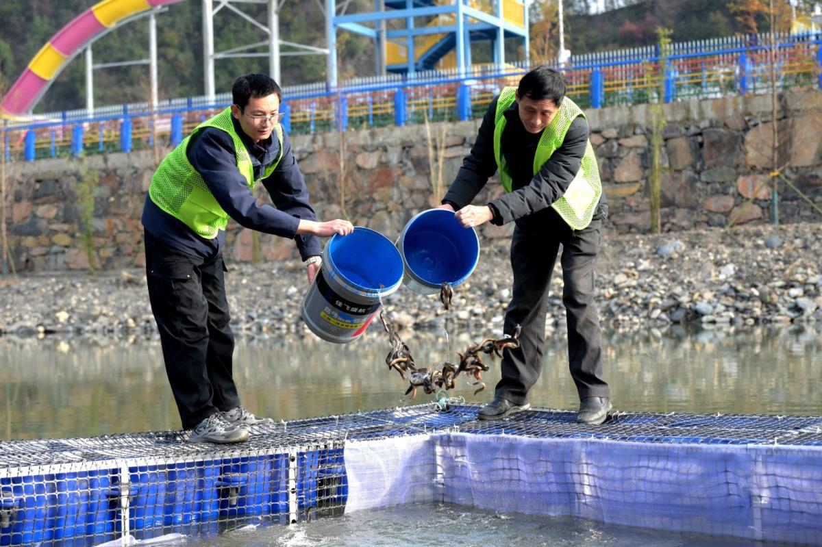今日竹山网消息 11月24日,县林业局工作人员在堵河流域投放泥鳅2000尾,为候鸟补给越冬“粮草”。
