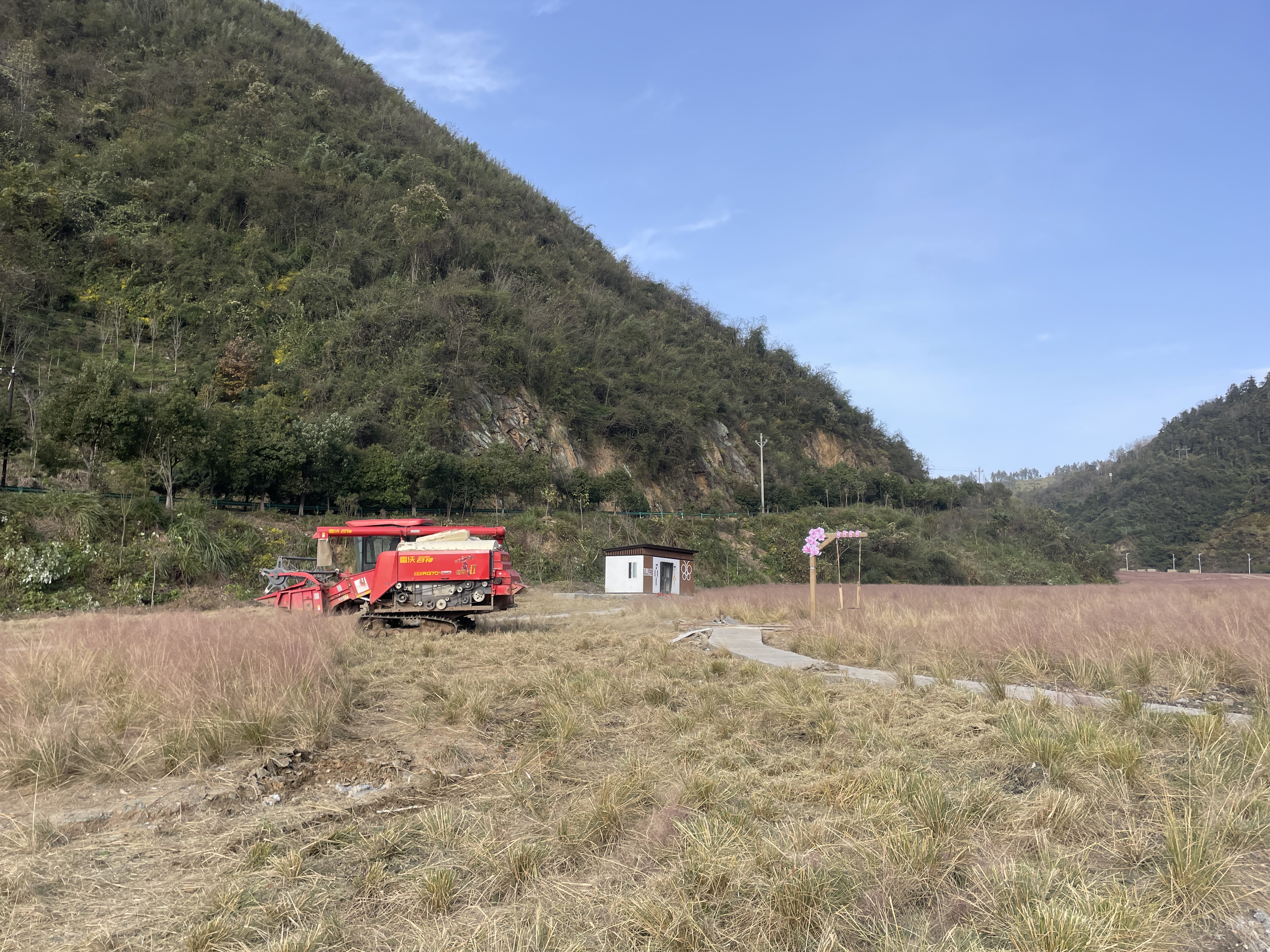 今日竹山网消息 11月24日,上庸镇粉黛乱子草种植基地内机械轰鸣,一台雷沃谷神RG70收割机正有序作业,将金黄的粉黛植株切割、粉碎后均匀抛撒还田,为土地铺上一层“天然肥料”。这片曾以“粉色花海”闻名的网红基地,正通过生态循环方式实施冬季养护。