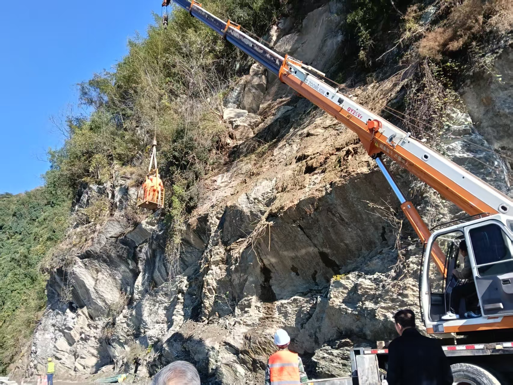 针对巡查中发现的山体落石隐患,迅速响应。在242国道K1717+100处,排险人员拆解主动防护网,逐一清除松动岩体;在K1790+000路段,利用悬臂车和专业工具精准排除危石,及时消除坠落风险。