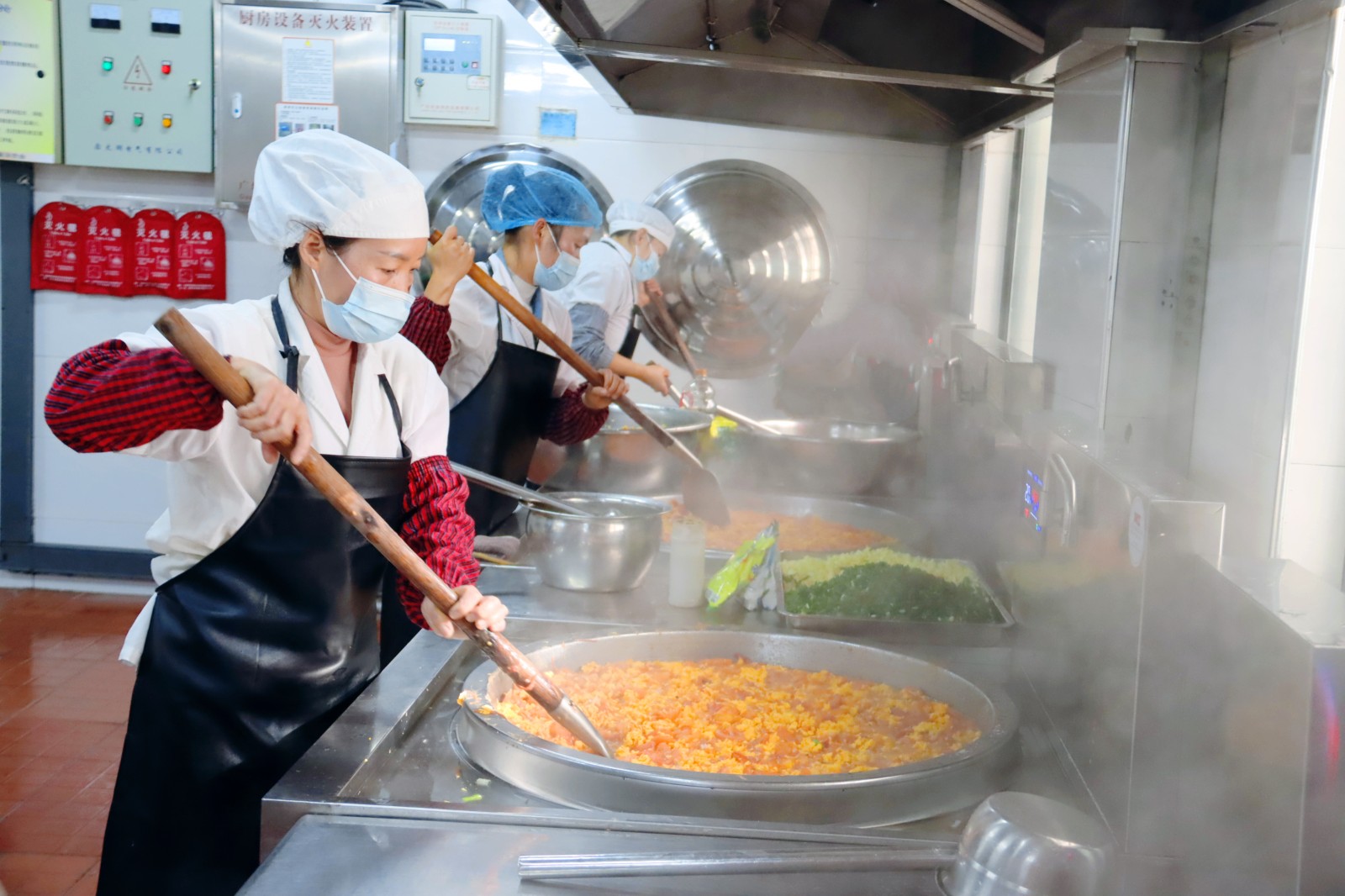 该食堂于2018年投入运营,18名炊工全部都是“妈妈炊工”。她们不仅承担着员工的工作职责,还兼任饮食安全监督员。员工胡修丽表示,这份工作就像给自家孩子做饭一样,而且还能兼顾自己孩子的成长。学校在每学年开学前,会详细了解学生的家庭情况,优先招聘那些符合条件、持有健康证且无不良记录的学生家长。