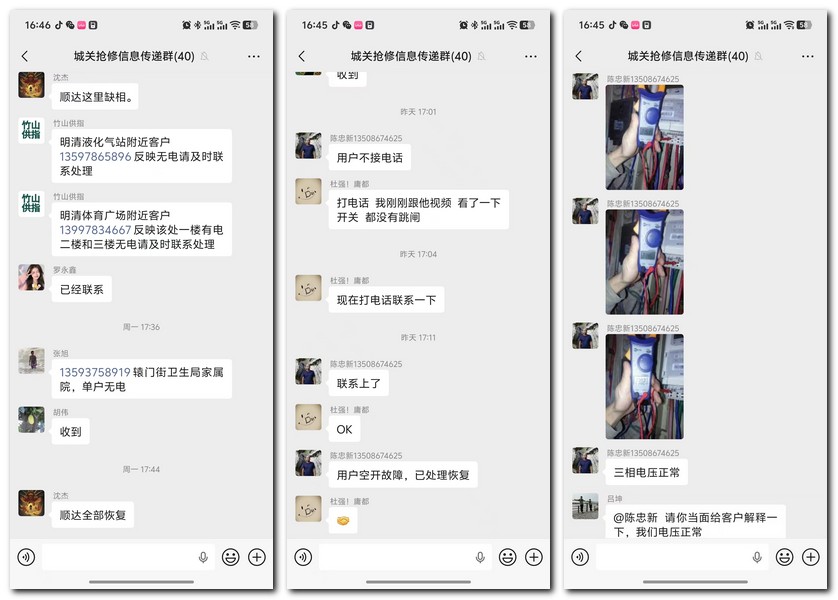 这一高效服务得益于该站打造的“四源汇流”抢修新模式。通过整合县供电服务指挥中心专线、服务站座机、网格员电话和社区微信群四条报修渠道,建立统一信息传递群,实现报修信息“秒级”同步、即刻派单。自今年初推行以来,除偏远地区外,城关片区故障抢修平均抵达时间已稳定控制在15分钟以内。
