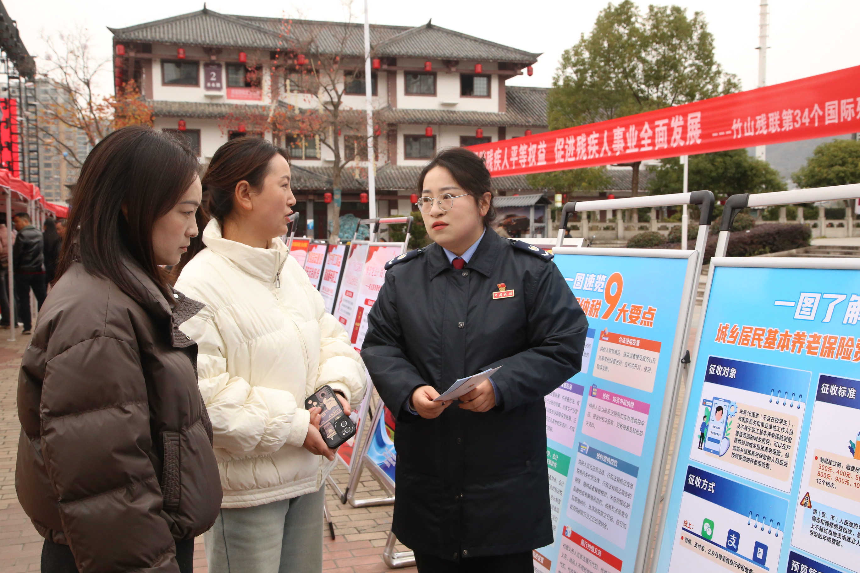 今日竹山网消息 12月2日下午,县税务局紧扣“12•4”国家宪法日“学习宣传贯彻习近平法治思想,推动宪法深入人心”主题,在桃花源女娲广场举行宪法宣传活动,以“税务力量”助力宪法精神落地生根,推动税收法治宣传走深走实。