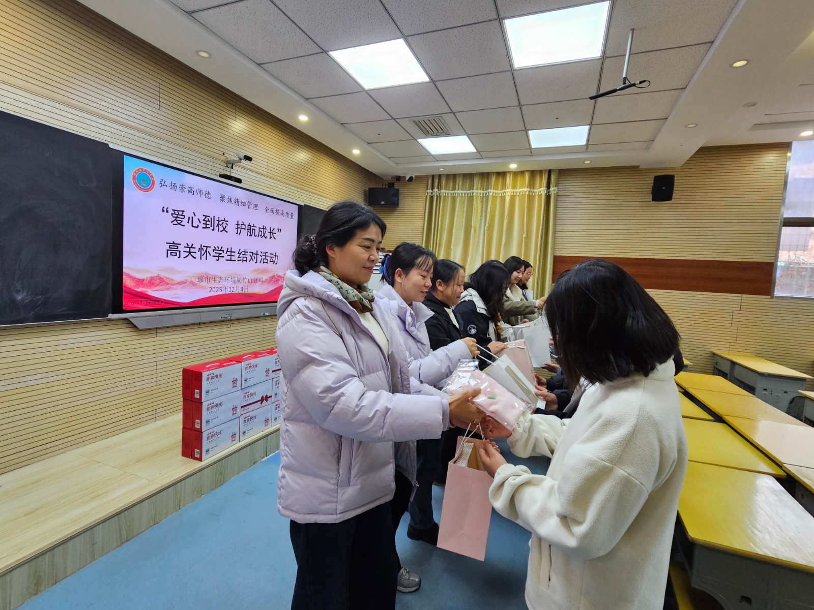 今日竹山网消息 12月4日,县生态环境局组织12名干部赴擂鼓镇,开展高关怀学生结对帮扶活动,为学生送去精心准备的成长温暖包,用实际行动架起爱心桥梁。