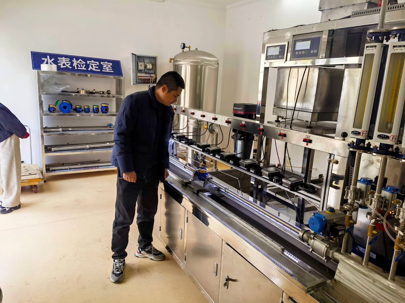用户携疑似存在计量问题的水表来到中心后,检定人员首先向在场各方详细说明了本次仲裁检定的依据——《冷水水表检定规程》及具体操作流程。随后,在多方共同见证下,检定员严格遵循规程,依次进行外观检查、密封性试验及示值误差检定等项目。在核心的示值误差检测环节,水表被安装于专业检定装置,通过不同流量点的精准测试与数据记录,确保了检定结果科学可靠。