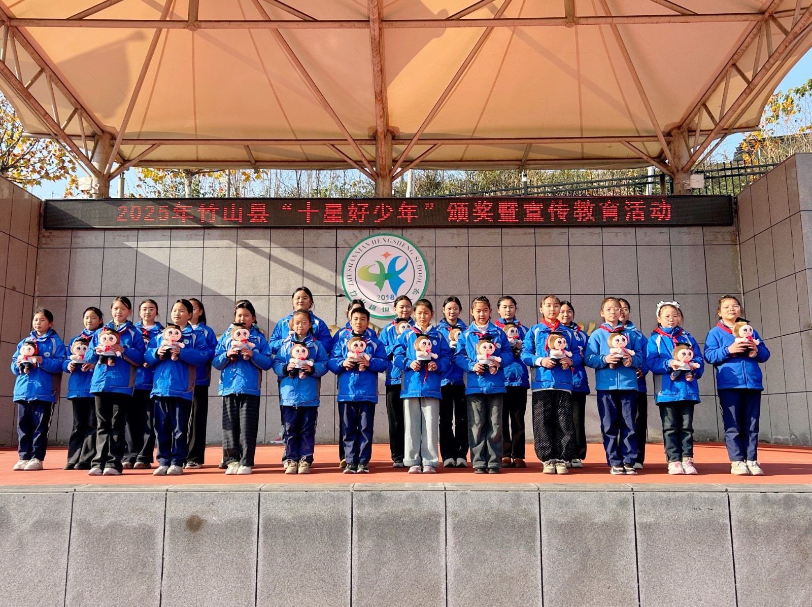 今日竹山网消息 12月8日,恒升小学举行“十星好少年”颁奖暨宣传教育活动。3名获竹山县“十星好少年”、20名市级健美操比赛获奖学生分别登台作自我介绍,分享他们的心得体会。