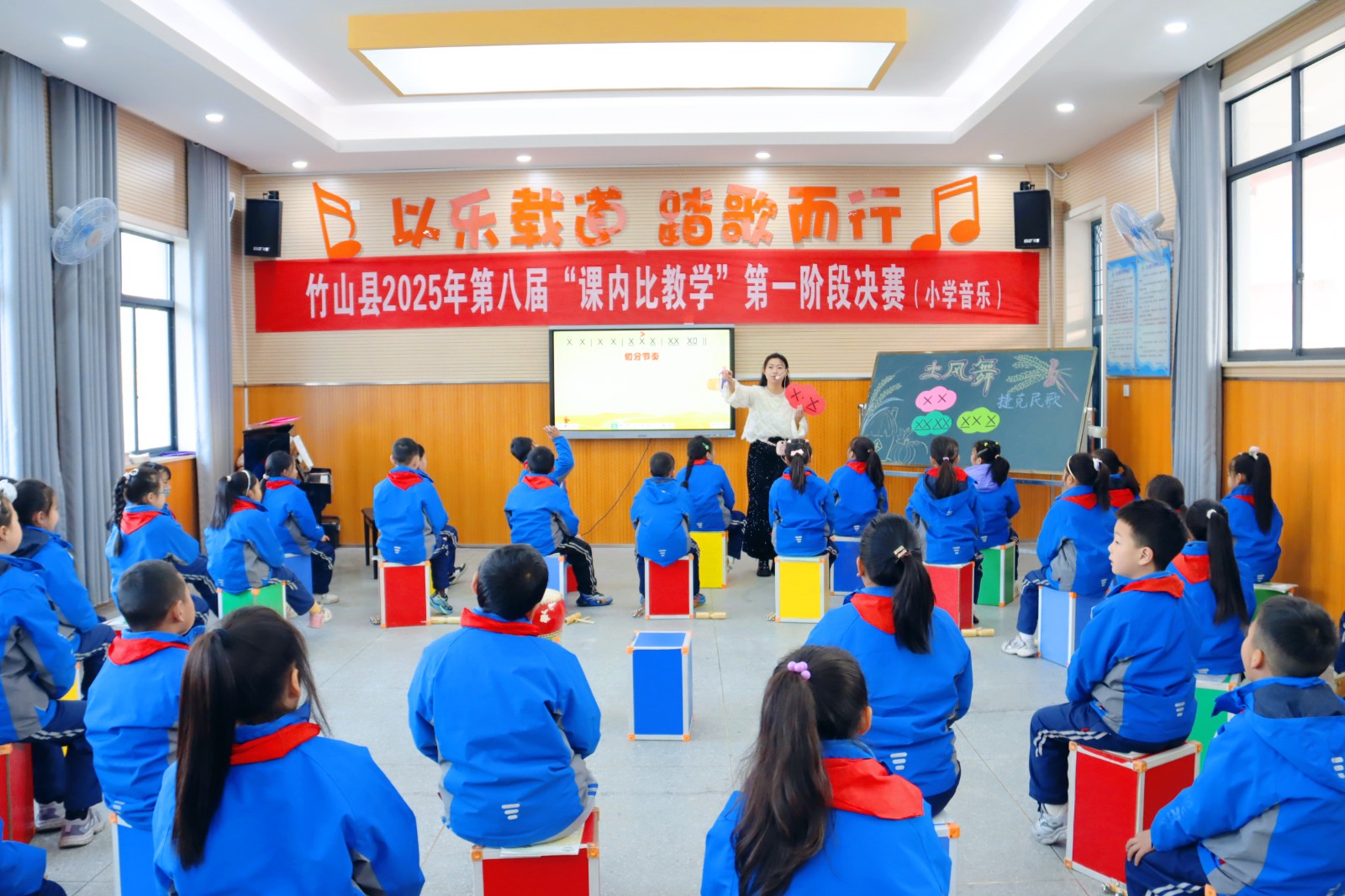 今日竹山网消息 12月10日,第八届“课内比教学”小学音乐决赛在恒升小学举办。