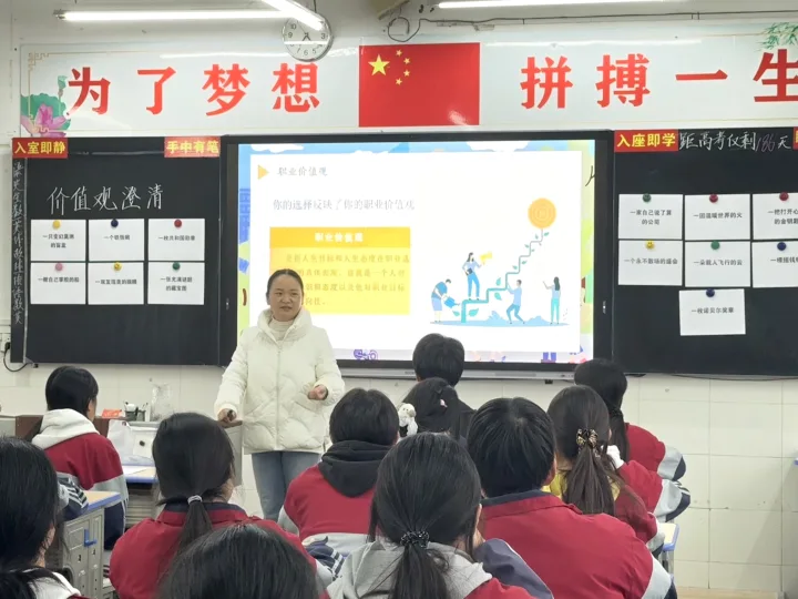 在比赛中,多位心理健康教师呈现了各具特色、贴近学生需求的精彩课堂。王新竹老师与高三(8)班同学共同探索未来职业规划,用《心愿超市》贯穿职业价值观探索,将舒伯13项价值观类比“心愿商品”分类陈列,任其“选购”,初探价值选择背后对应的理想职业。李慧老师带领高二(2)班同学共乘兴趣之舟,探秘霍兰德职业兴趣岛屿。课前击鼓传花小游戏以欢快氛围引入《探索职业星河,启航未来之舟》课堂,将AI技术融入课堂,启发学生思考AI盛行时代又该如何发展。李冉老师同高一(3)班同学跟随人本主义心理学家埃利斯的脚步,探讨《快乐维生素ABC》的奥秘。以“国王的梦”吸引孩子兴趣,用小明的一天带入孩子的情绪体验,用认知解离的方法认识情绪其实是被想法左右的,自己才是改善情绪的法宝。