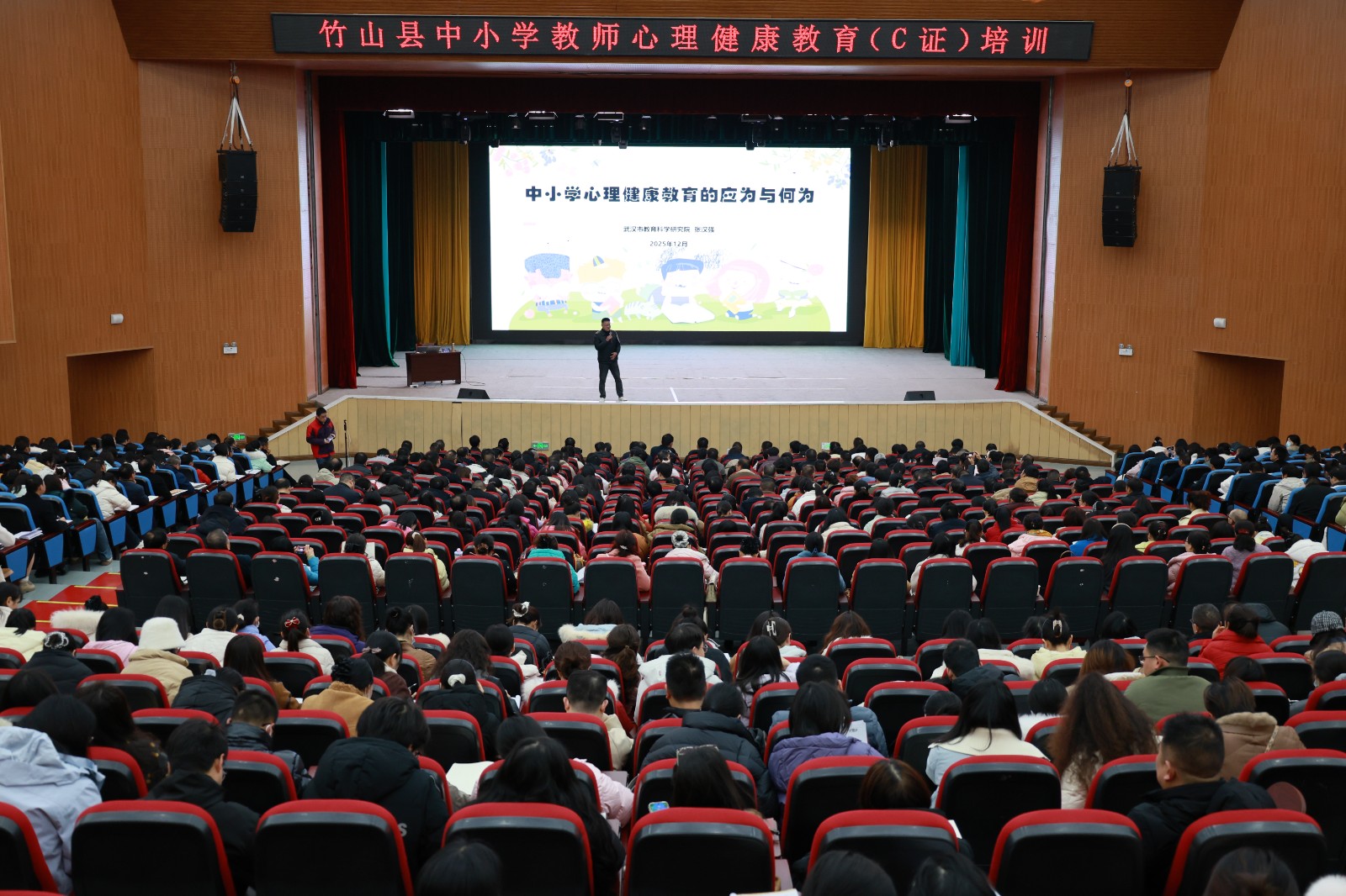 今日竹山网消息 为全面贯彻党的教育方针,落实立德树人根本任务,系统提升全县教师心理健康教育专业素养与实务能力,构建科学有效的学生心理健康护航体系,12月13日至14日,竹山县中小学教师心理健康教育(C证)培训第一期在县职业技术集团学校正式开班。全县各乡镇中心学校和县直相关学校书记、校长及996名班主任齐聚一堂,共同开启为期三个月的系统化、专业化学习之旅。武汉智立教育研究院院长、心育网总裁张启社博士应邀出席并作培训方案解读。