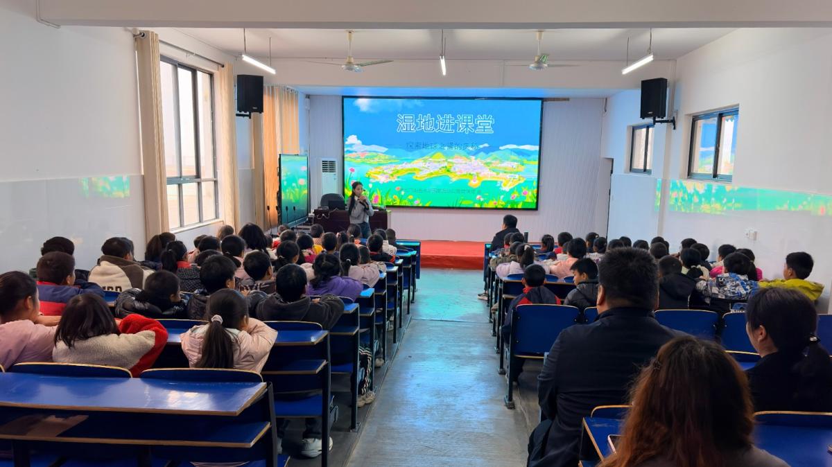 今日竹山网消息 12月17日,圣水湖管理局走进上庸镇中心学校,为四年级学生带来了一场生动的湿地知识宣讲。副县级干部、圣水湖管理局局长陈国华参加活动。