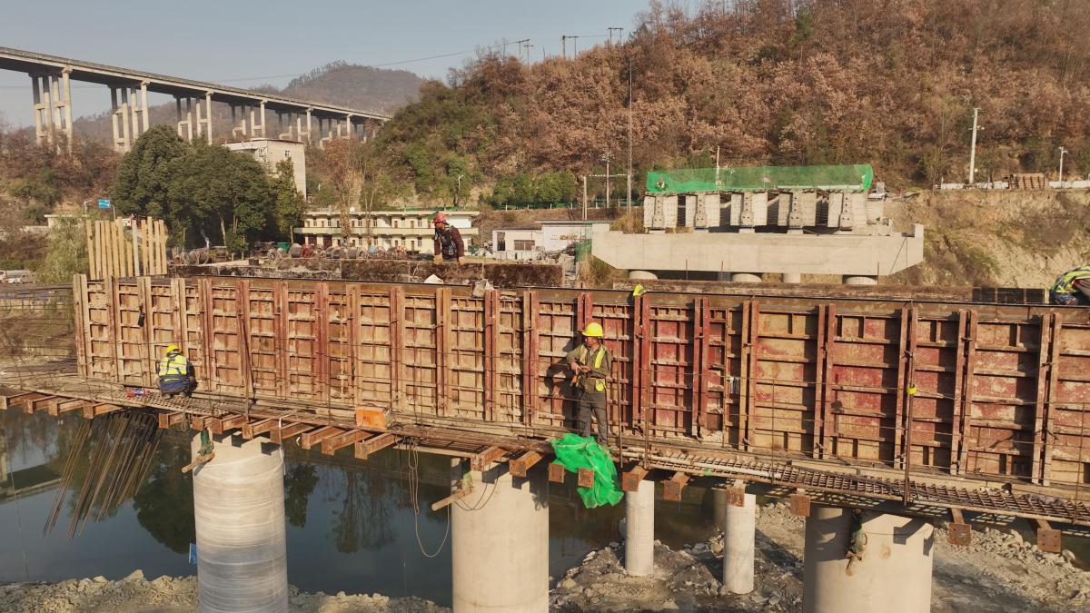 今日竹山网消息 冬日寒意挡不住建设热潮,霍河桥重建工程作为十堰市“三年消危”重点民生项目,当前正进入关键攻坚阶段,各项施工工序紧张有序推进,朝着既定通车目标全力冲刺。