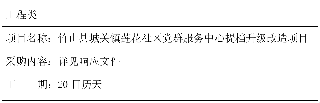 二、项目名称:竹山县城关镇莲花社区党群服务中心提档升级改造项目