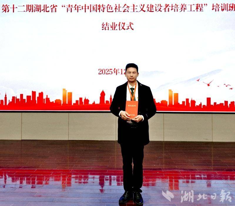 12月1日至5日,第十二期湖北省“青年中国特色社会主义建设者培养工程”培训班在武汉举办,得胜镇新的社会阶层人士联谊会会员、稻香诗社会员龚德银作为十堰地区两名学员之一,参加学习。