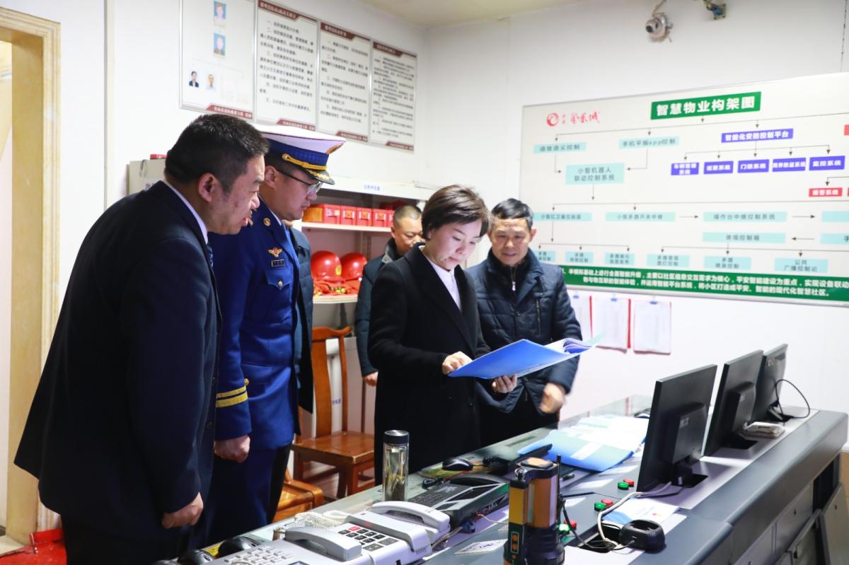 在金龙凤凰城物业消防控制室,王丽媛仔细查阅日常防火巡查台账、消防设施维护保养记录以及应急预案和演练资料,现场询问物业工作人员消防设施操作流程、应急处置响应机制等情况。