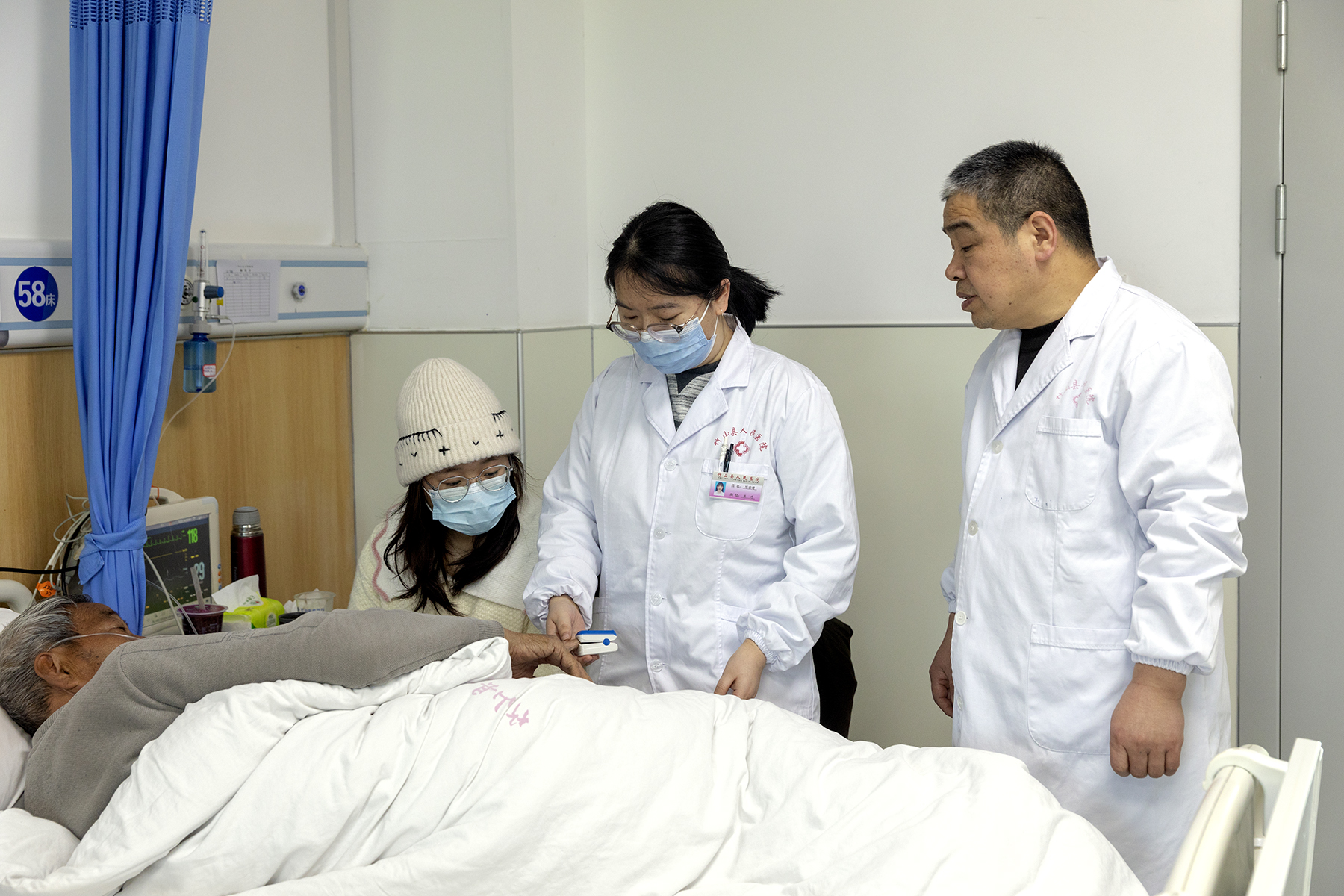 65岁的肖先生是一名退休矿工,3天前因咳嗽伴咯血、胸闷气促紧急入院,胸部CT提示左肺感染、双肺多发结节,还合并间质性肺病、冠心病等基础病。管床的是去年8月入职的年轻医生陈雪婧,“一开始我还有点慌,肖叔的情况不算轻。”陈雪婧介绍说,“科里主任和前辈们都帮着我梳理方案,我每天多跑几趟病房,就想早点减轻患者的病痛。”