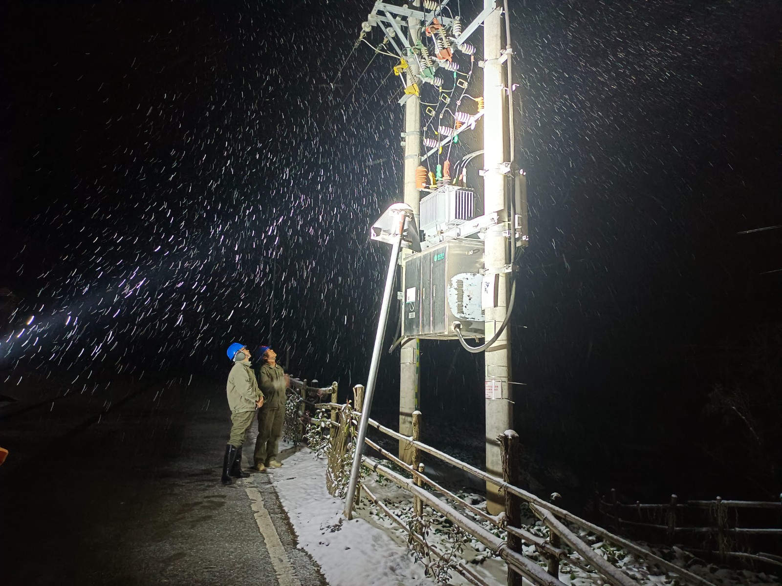 今日竹山网消息 1月19日夜间,我县出现低温冰雪天气,电网安全运行面临考验,县供电公司立即启动应急预案,组织力量对重点线路展开特巡。