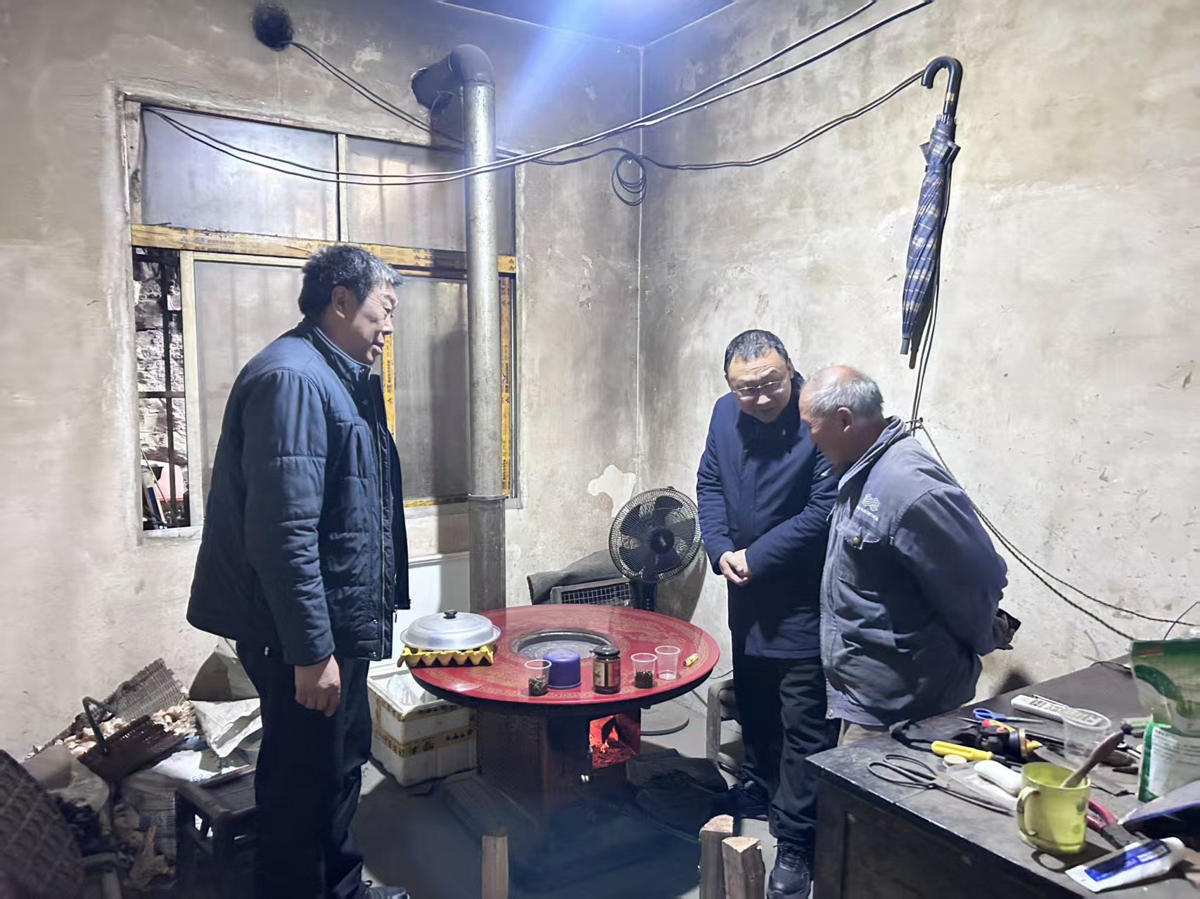夜色中,工作人员逐户叩开群众家门,与困难群众促膝谈心,细致叮嘱做好防寒保暖,反复强调燃煤、用电取暖安全常识。每到一户,都重点排查用火设备、电路管线等隐患,对发现的老化线路、通风不畅等问题现场协助整改,把安全提醒送到群众心坎上。走访中,工作人员还为困难家庭送上棉被、取暖设备等物资,将党和政府的关怀精准送达。“天冷了,干部们既查隐患又送物资,心里特别暖。”独居老人握着工作人员的手说道。