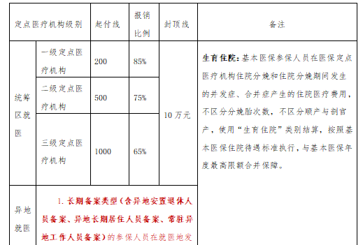 (四)住院待遇。执行全市统一的城乡居民基本医保待遇标准。