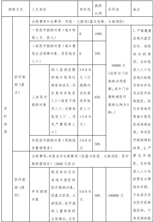 医疗救助待遇标准一览表
