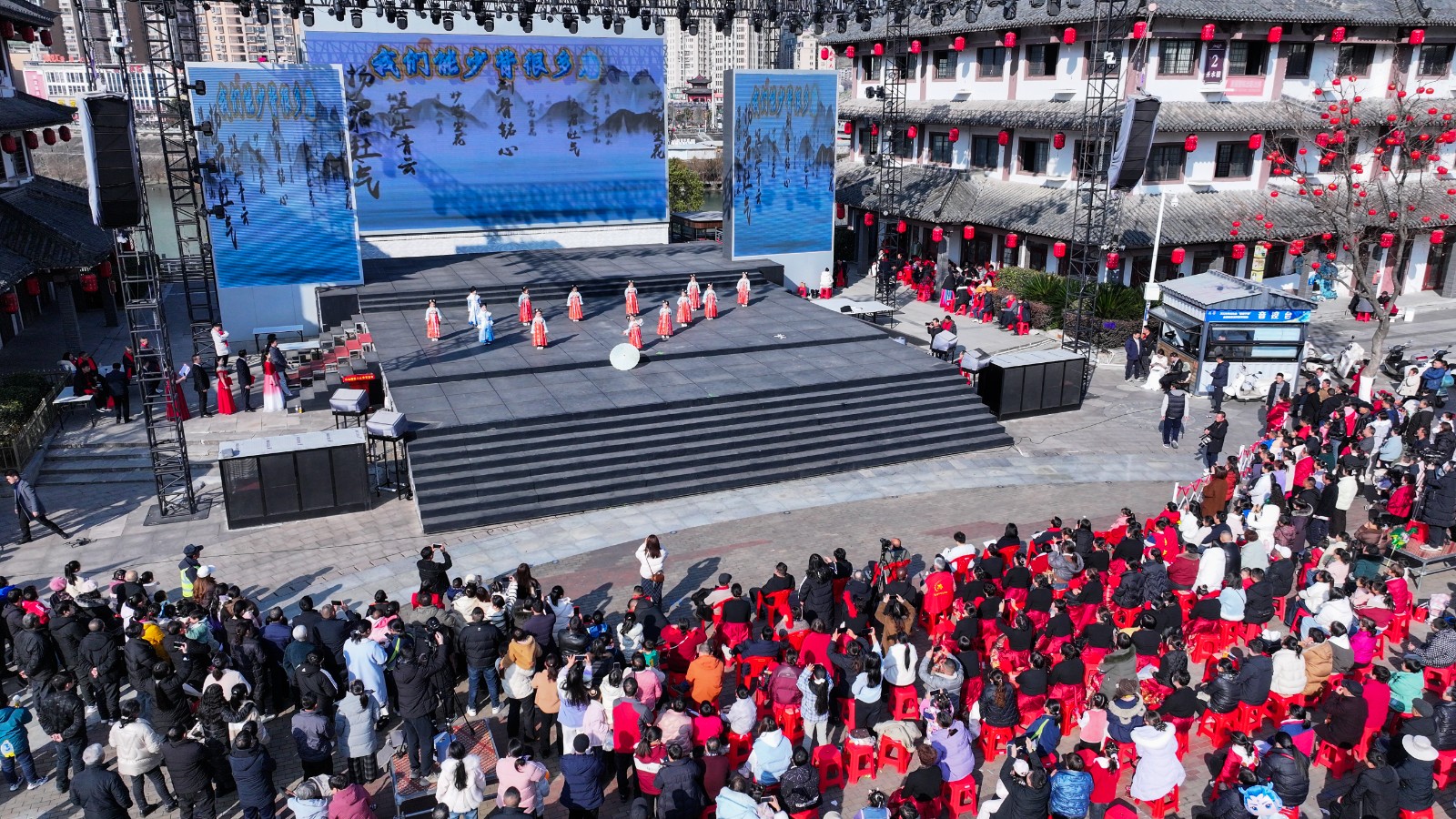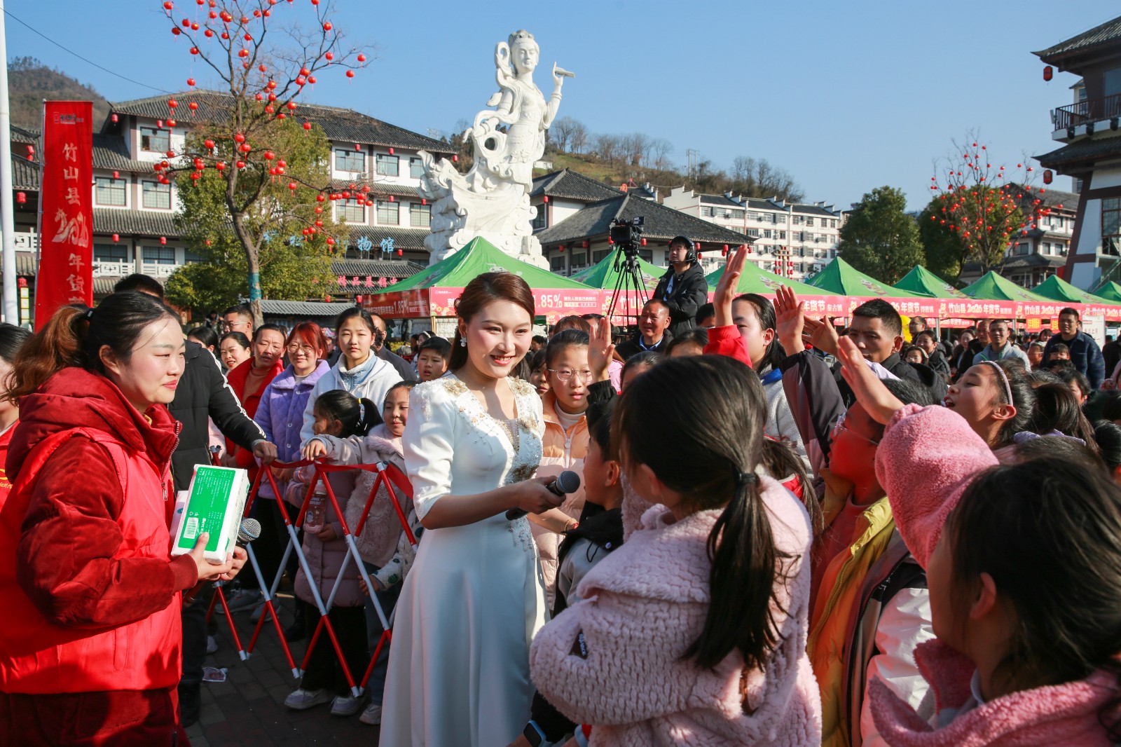 今日竹山网消息 1月24日下午,我县2026年迎新春诗词大会在桃花源街区女娲广场启幕,同步联动年货节展销活动,以诗词为媒拉动文旅消费,全方位展示竹山古韵新姿,实现“文化赏心”与“消费暖心”双向赋能。