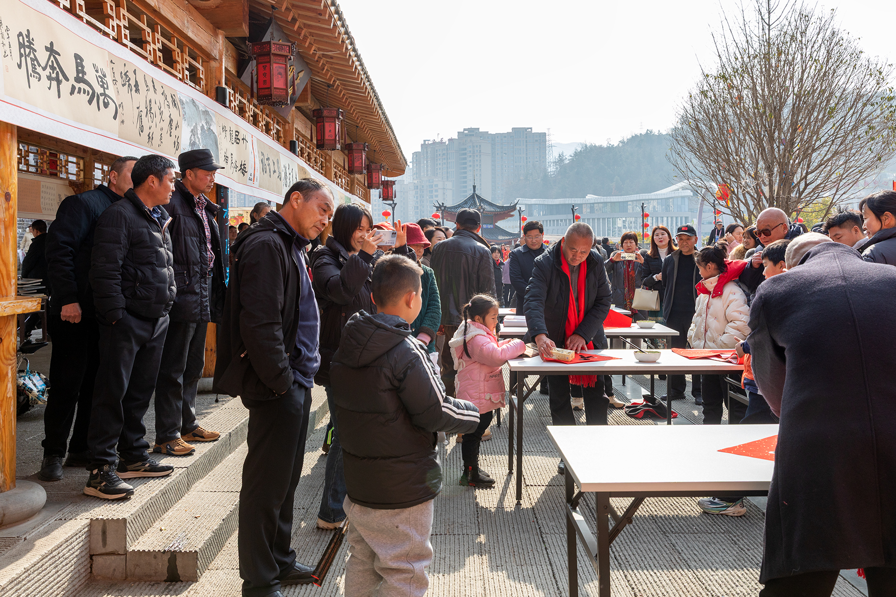 活动现场,书法家们铺好红纸、饱蘸浓墨,在行云流水间将对新春的美好期盼融入笔端。“春回大地千山秀,福降人间万户欢”“一帆风顺年年好,万事如意步步高”等一副副寓意吉祥的春联、一个个饱满圆润的“福”字跃然纸上,引得围观群众不时发出阵阵赞叹。